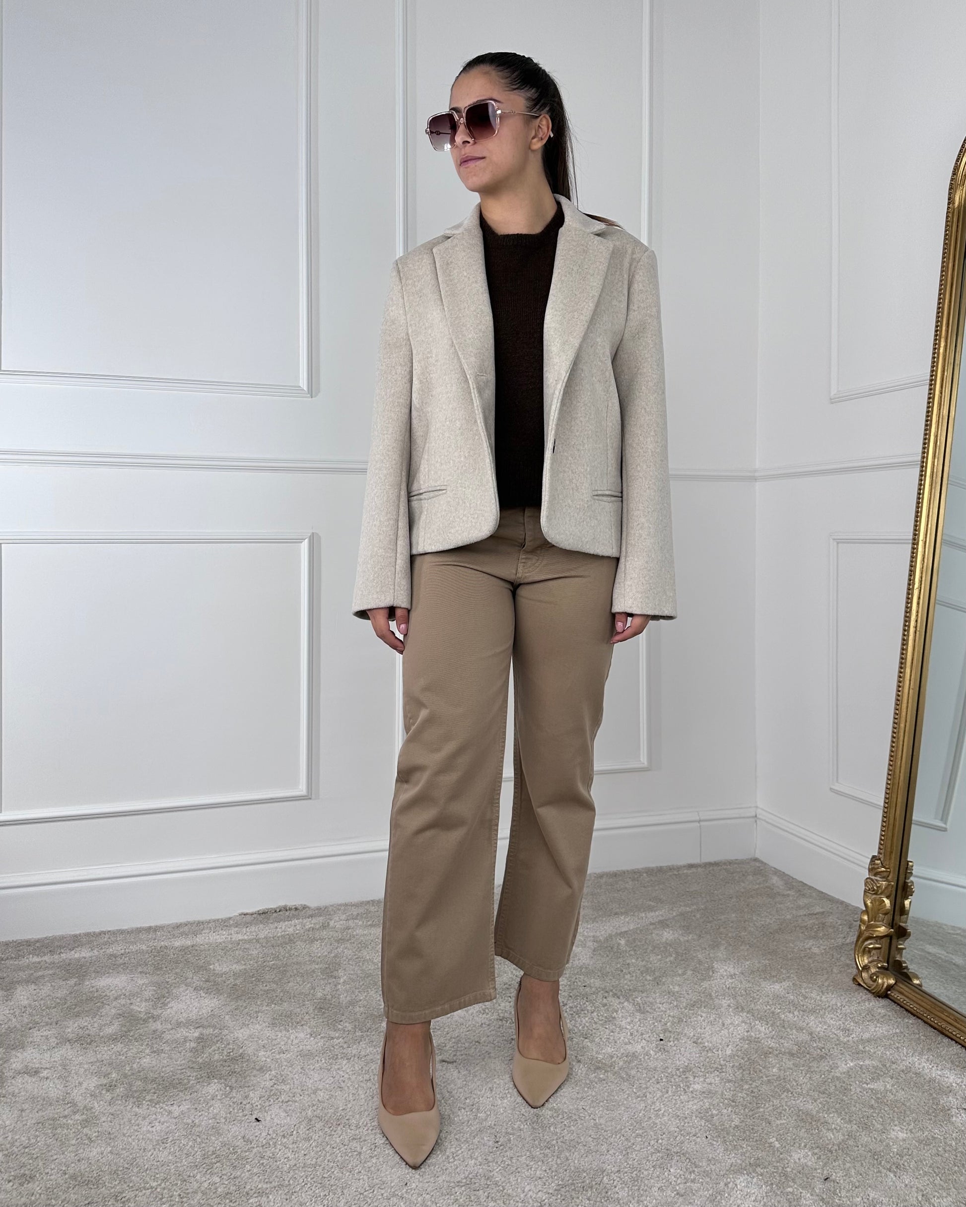 Tensione in giacca mano lana, monopetto, chiusura con bottone, foderata. Composizione: 50% poliestere 50% lana Composizione fodera: 100% poliestere