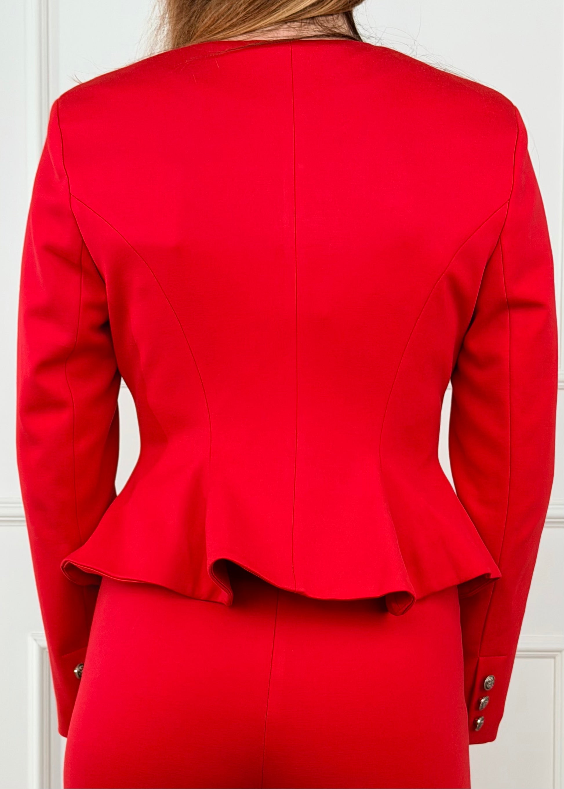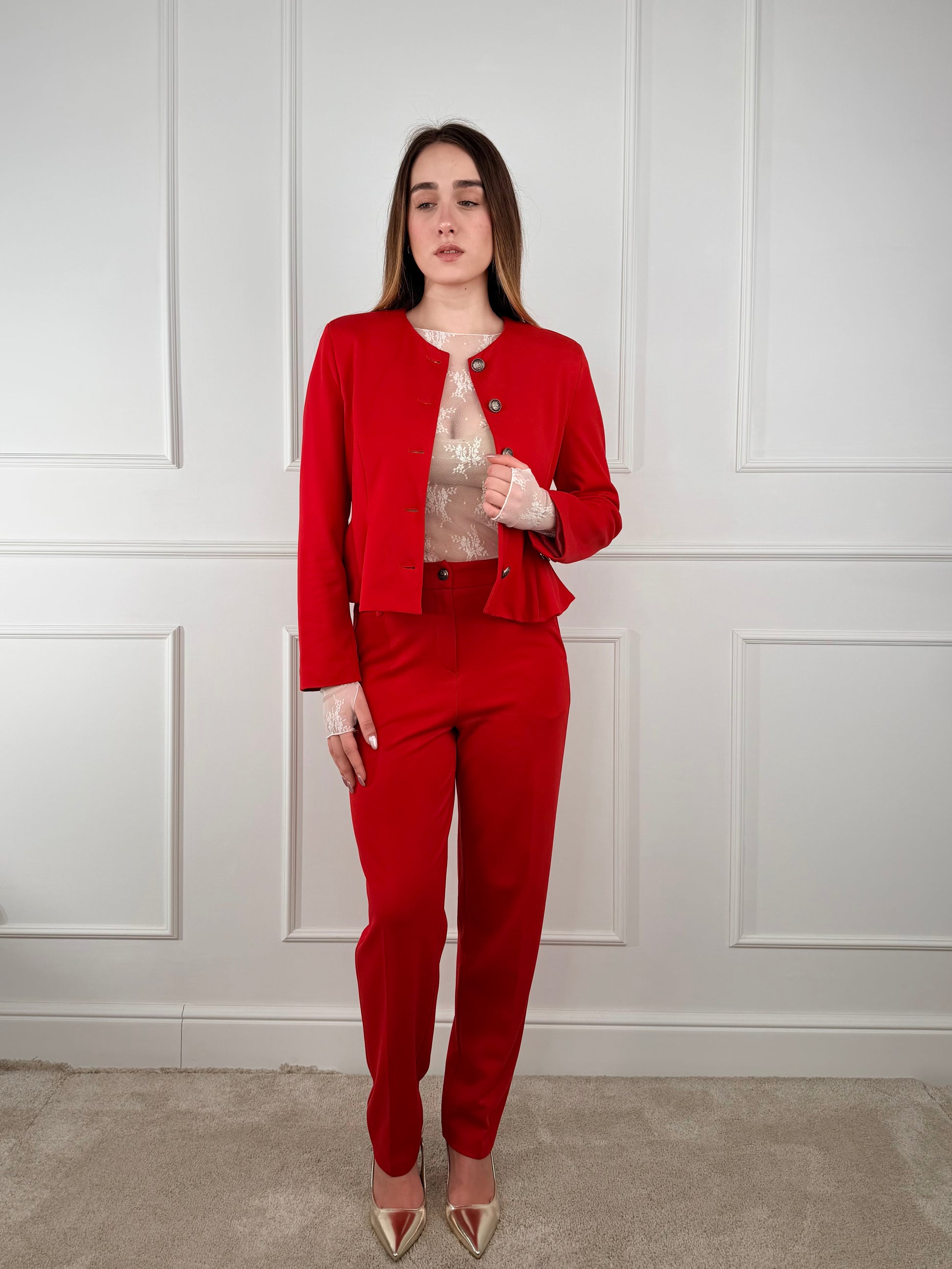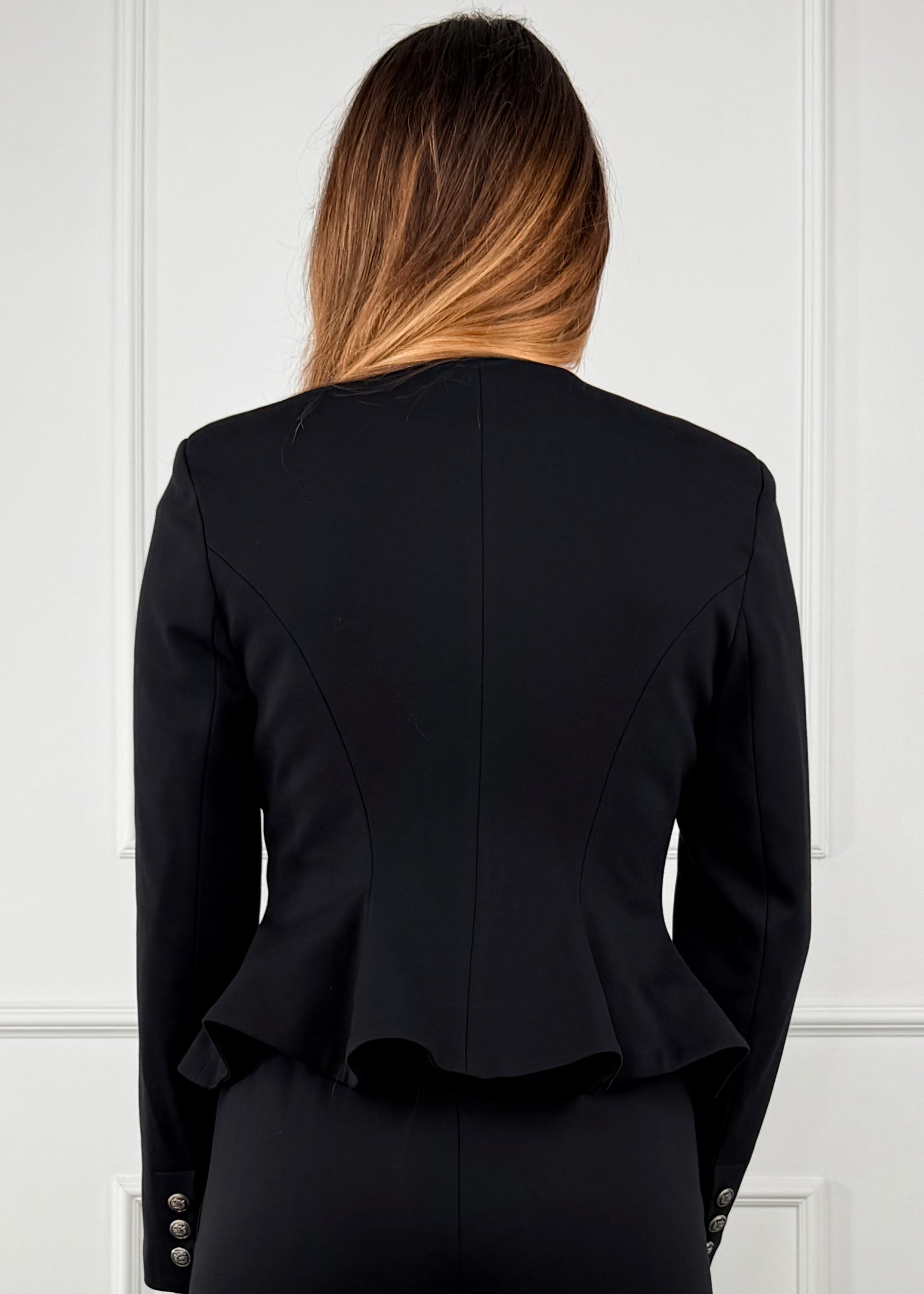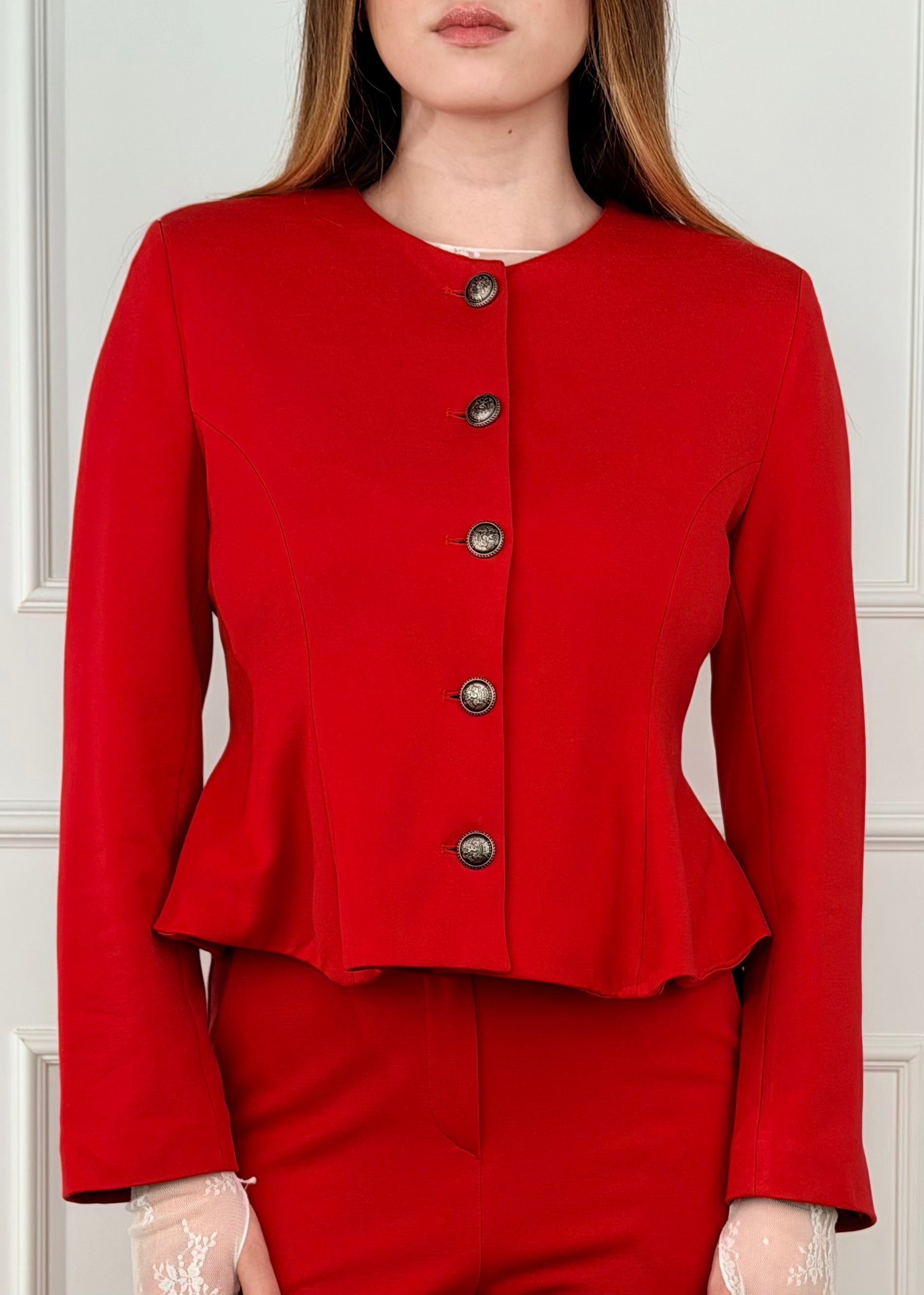 Tensione in giacca sfiancata in punto milano, collo coreano, chiusura con bottoni lavorati. Se vuoi creare un completo è disponibile il pantalone con il codice: 26P441 Composizione: 62% Viscosa 32% Polyamide 3% Elastan Composizione fodera: 10