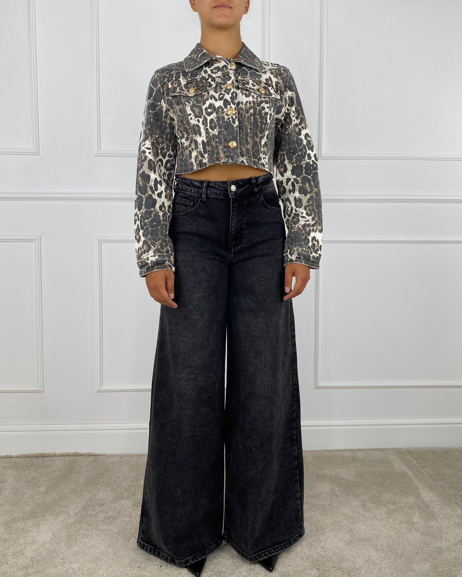 4749 - GIUBBOTTO DENIM CROP ANIMALIER