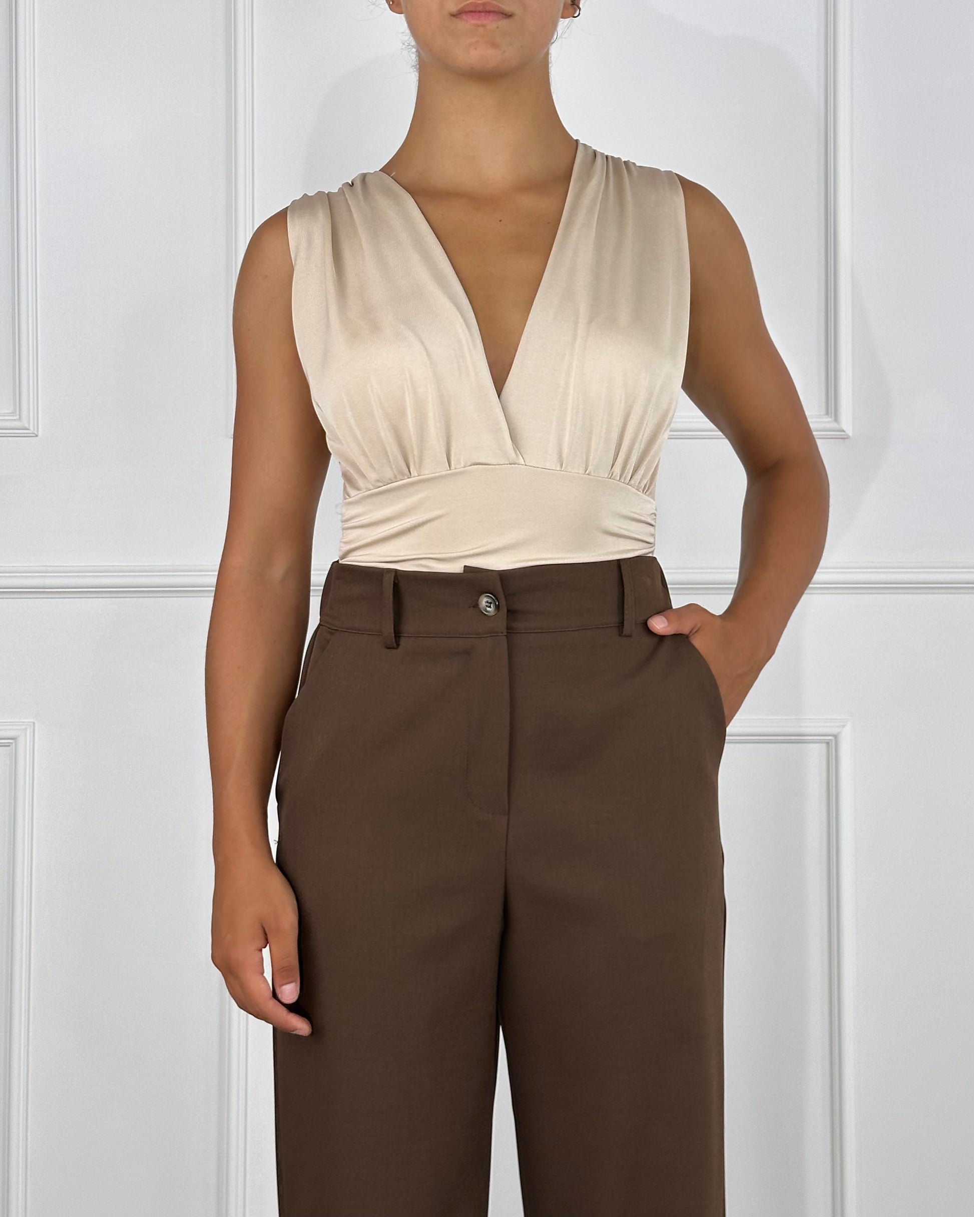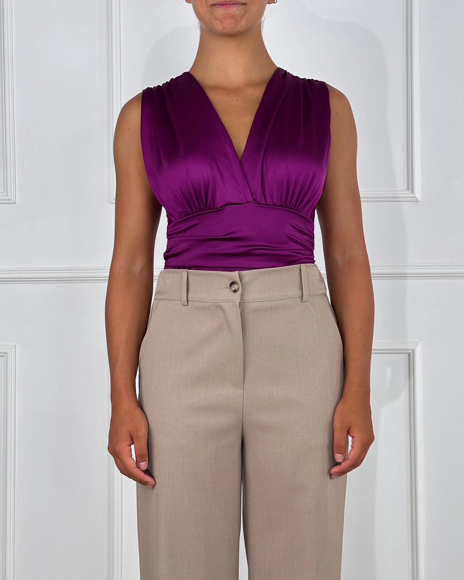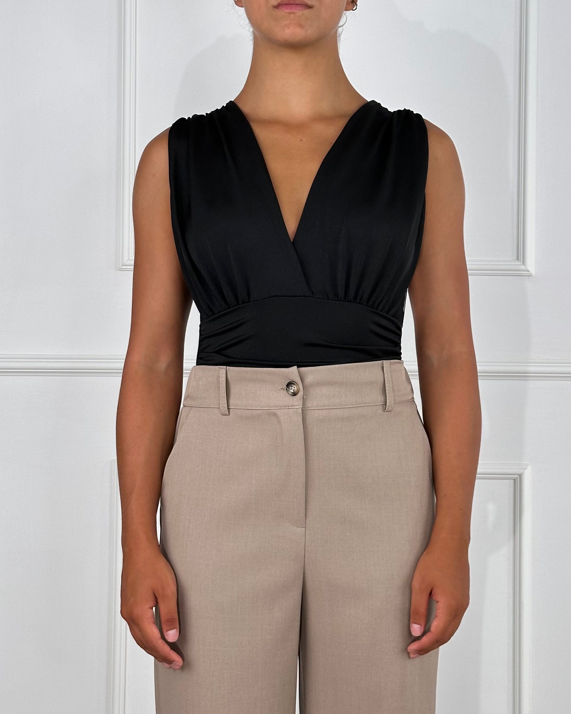 Body scollo a V. Composizione: 95% Poliestere 5% Elastan