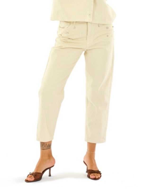 Giorgia & johns denim 5 tasche , gamba dritta, applicazioni di strass e perle, chiusura con bottone e zip nascosta. Se vuoi creare un completo è disponibile il giubbino con il codice: 60120. Composizione: 100% Cotone