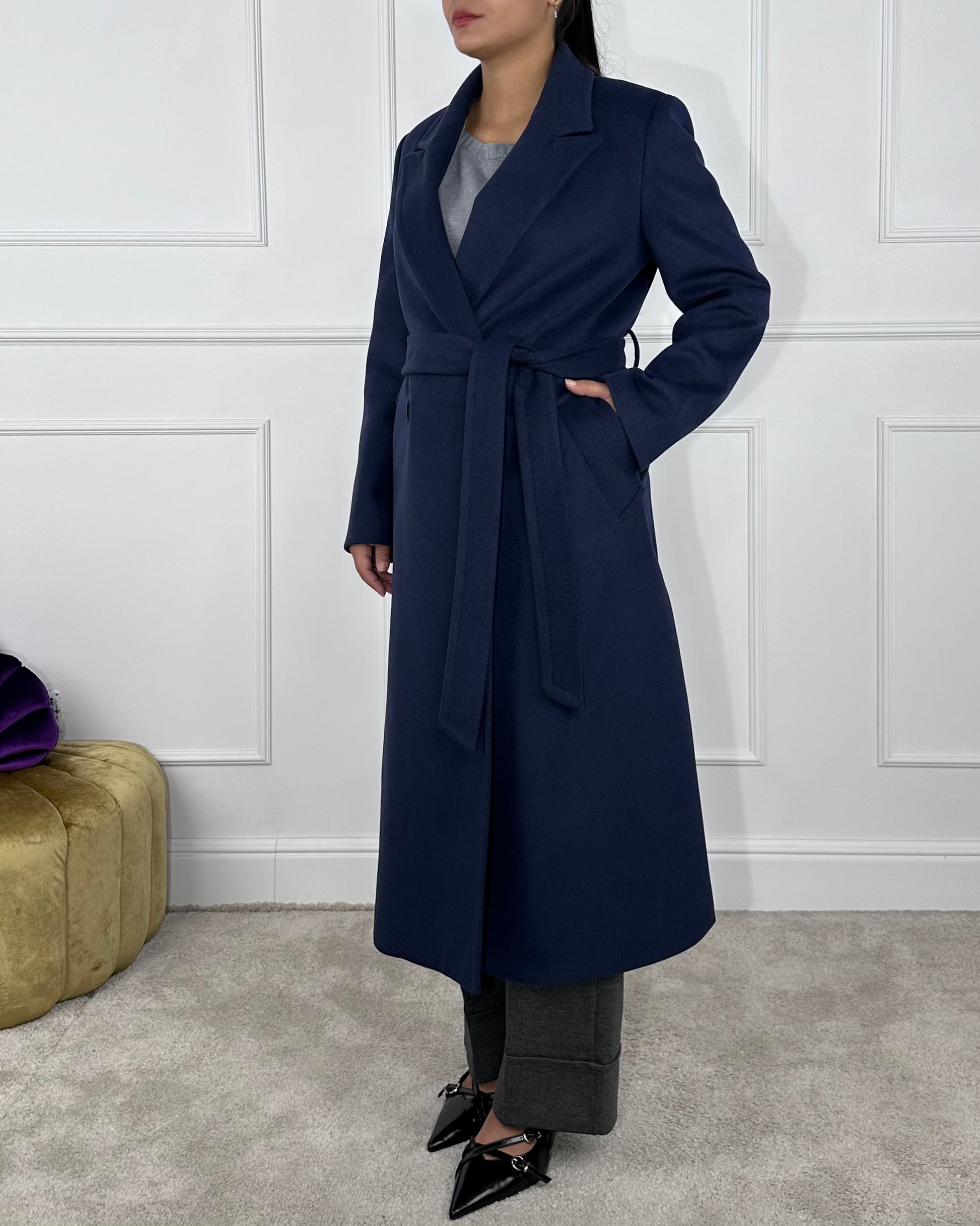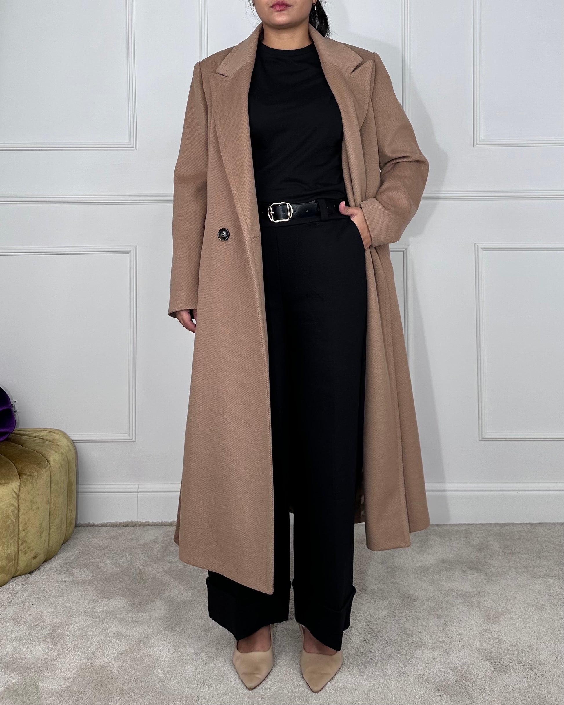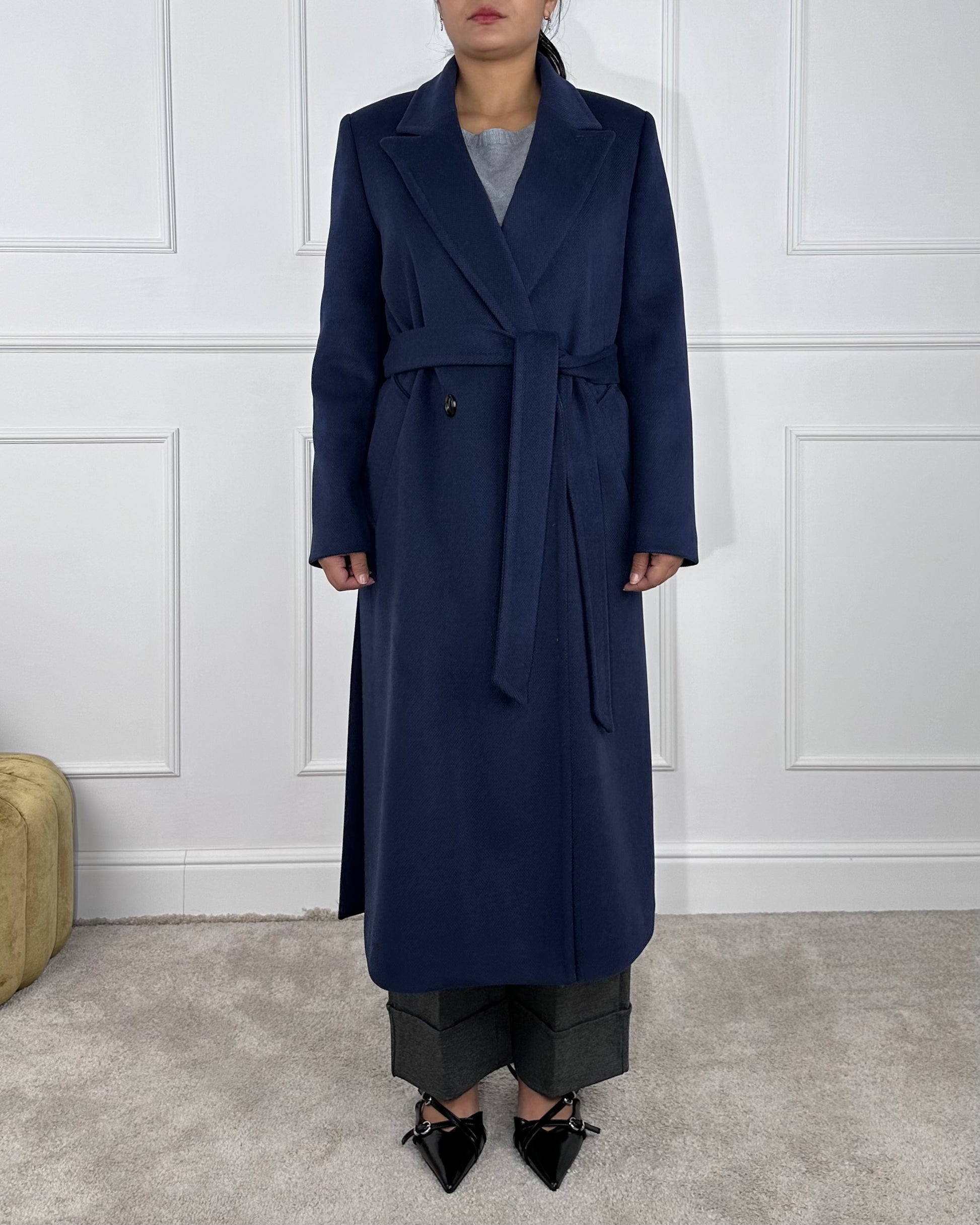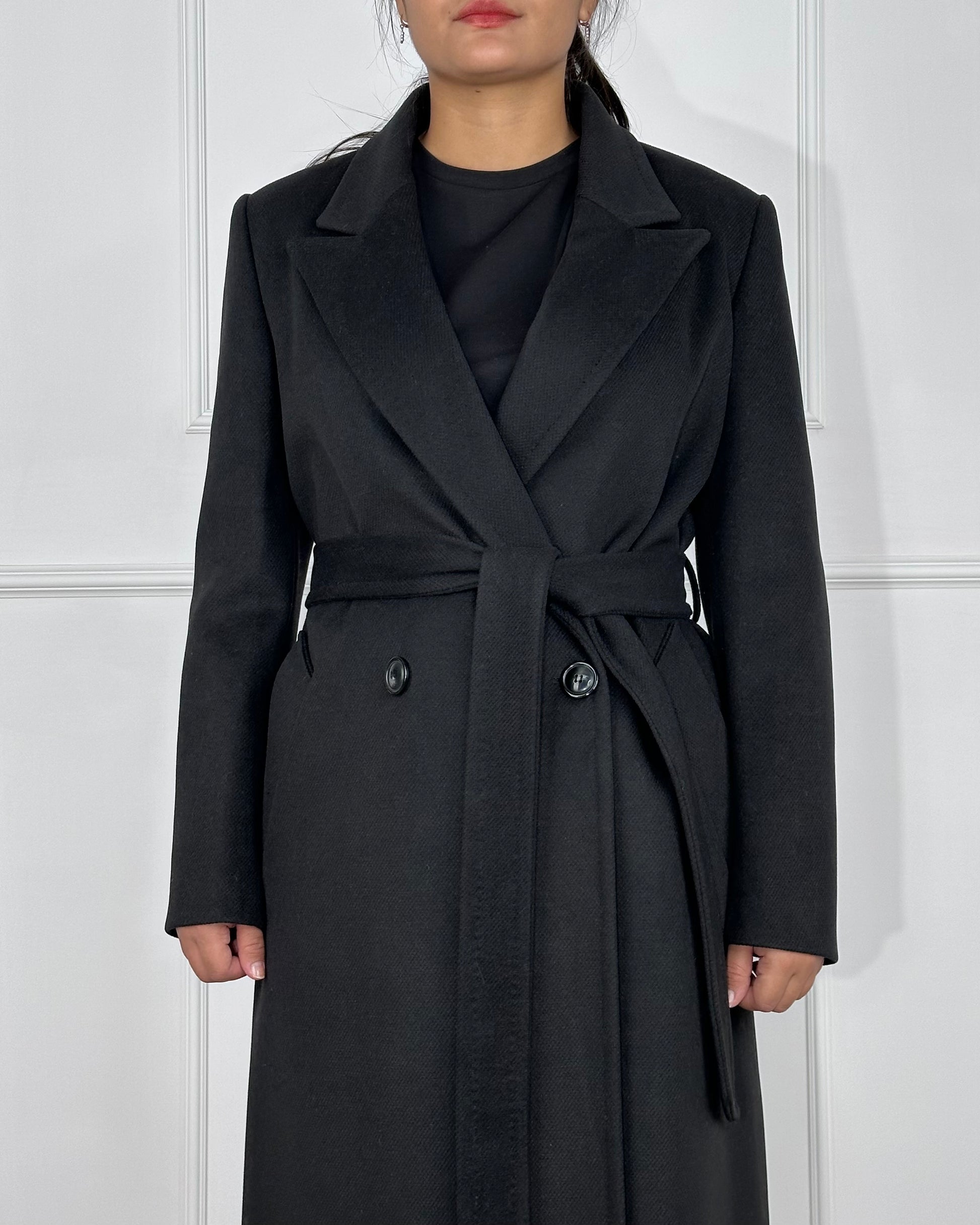 Tensione in cappotto doppio petto, dotato di passanti in vita, chiusura con bottoni e fusciacca. Tasche sul davanti, spacchetti laterali. Foderato. Composizione: 91% Poliestere 9% Viscosa