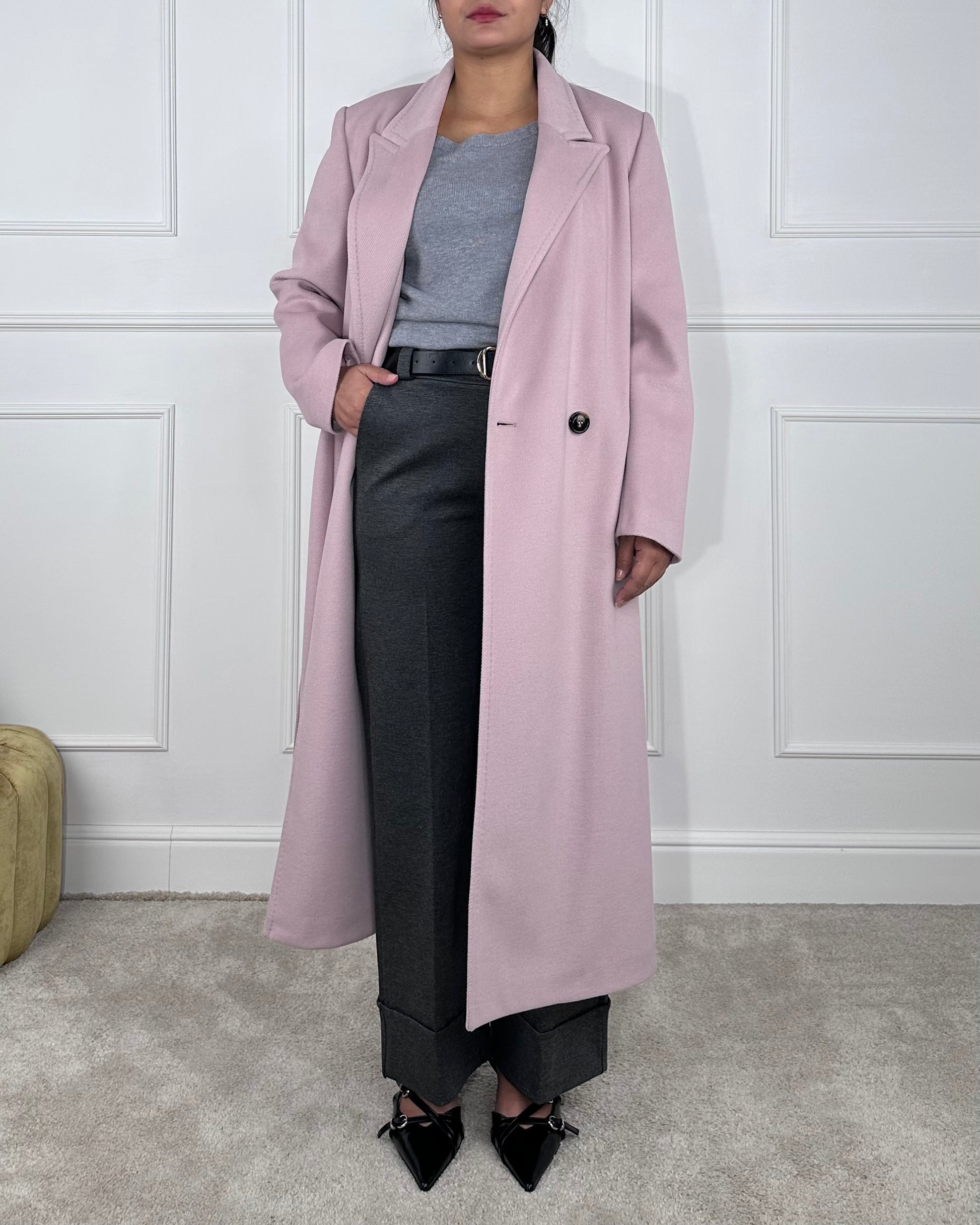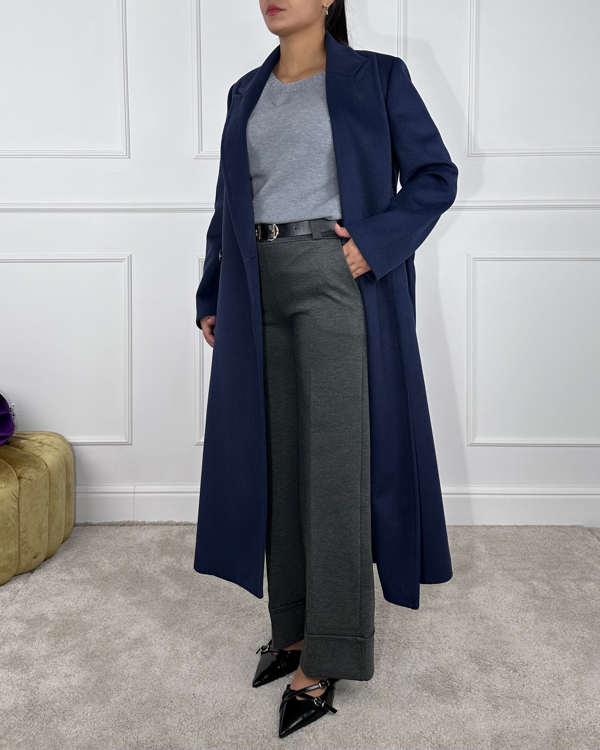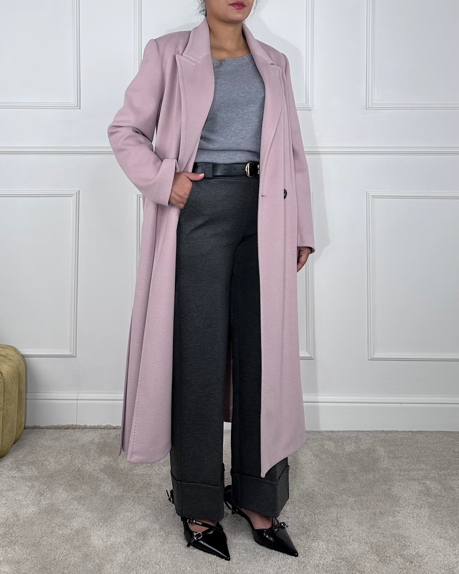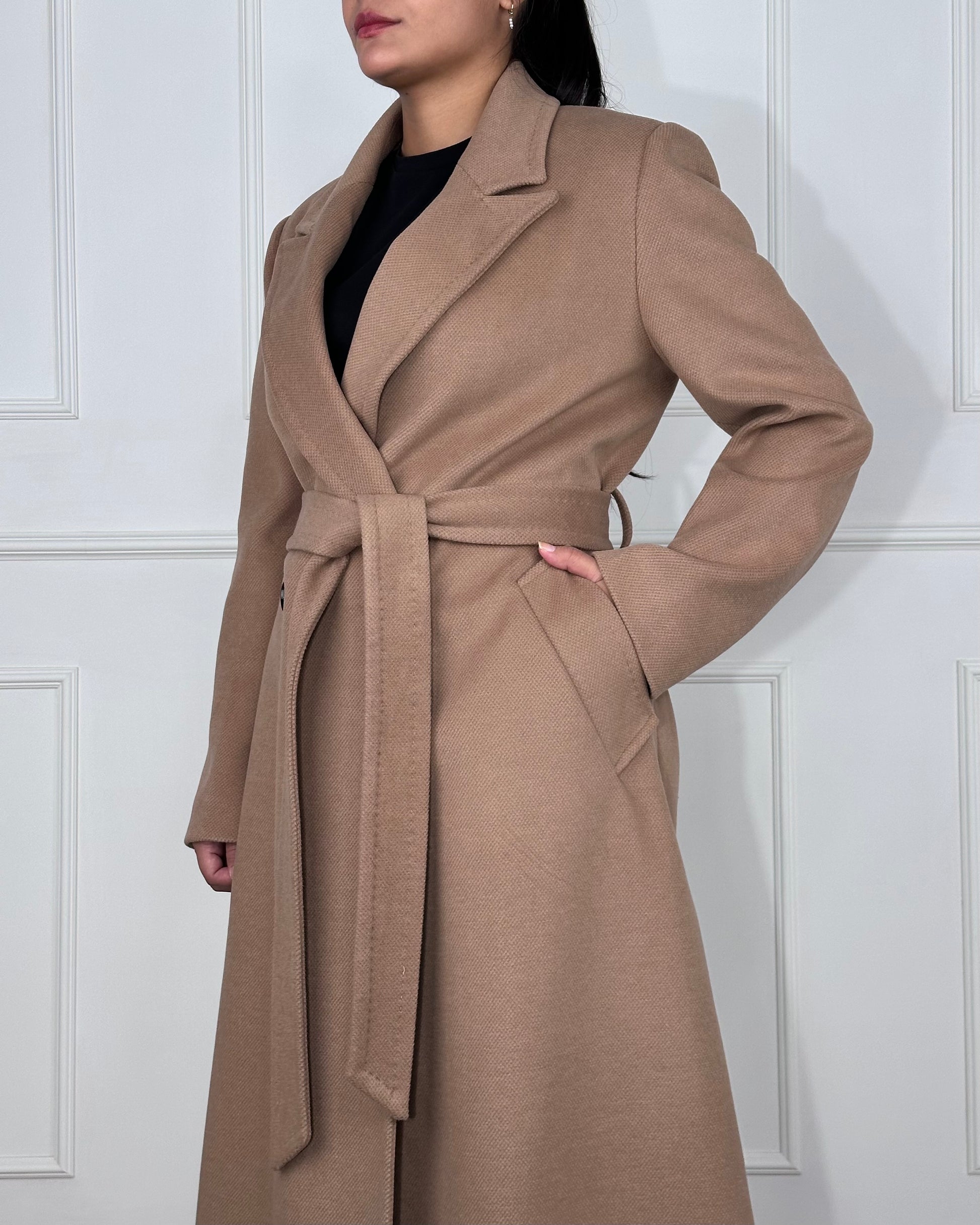 Tensione in cappotto doppio petto, dotato di passanti in vita, chiusura con bottoni e fusciacca. Tasche sul davanti, spacchetti laterali. Foderato. Composizione: 91% Poliestere 9% Viscosa