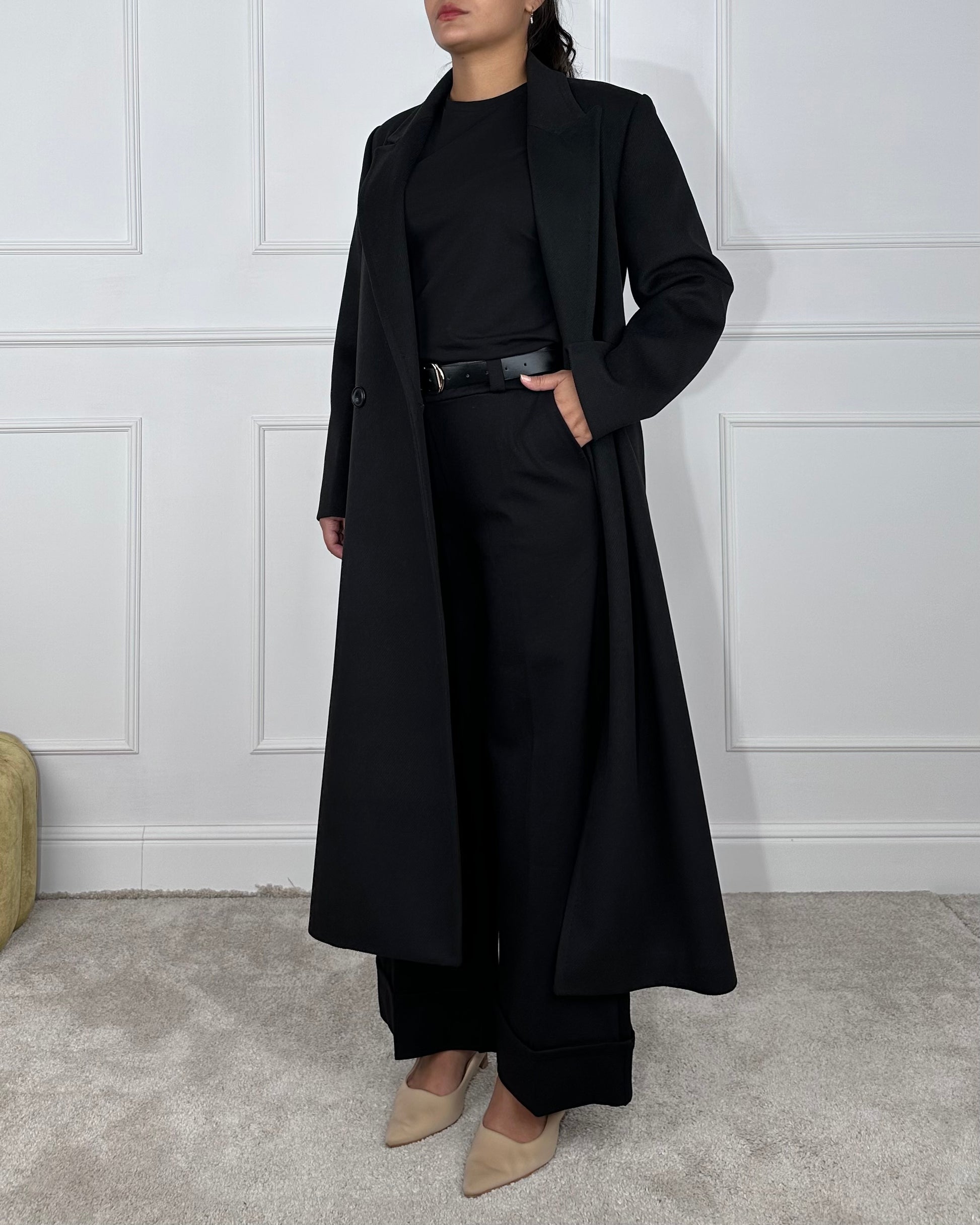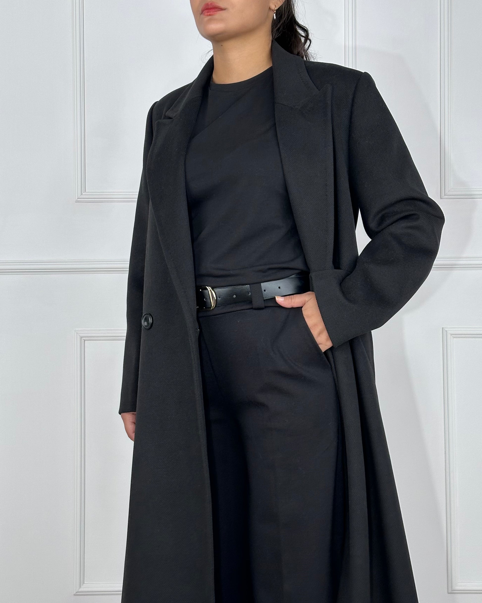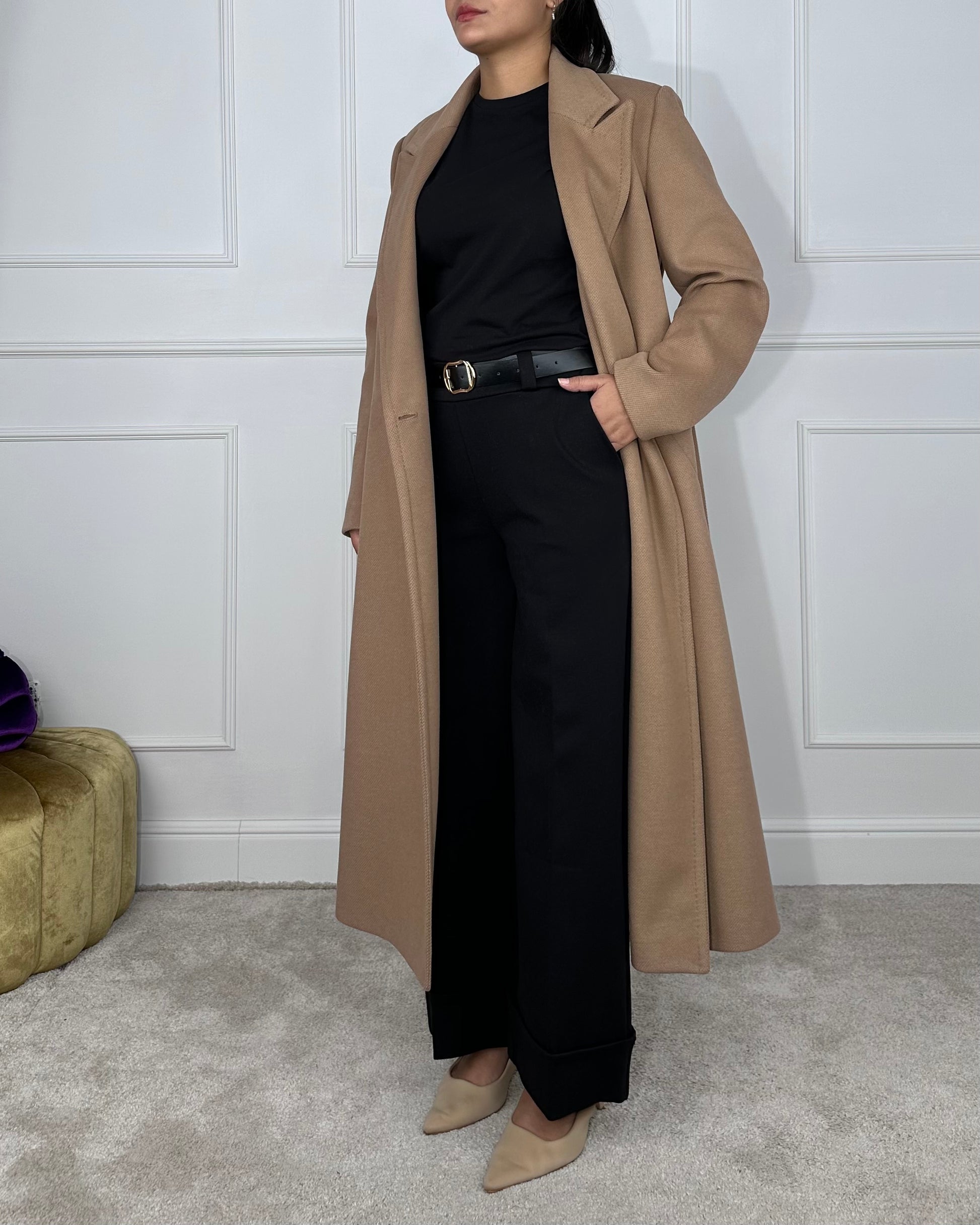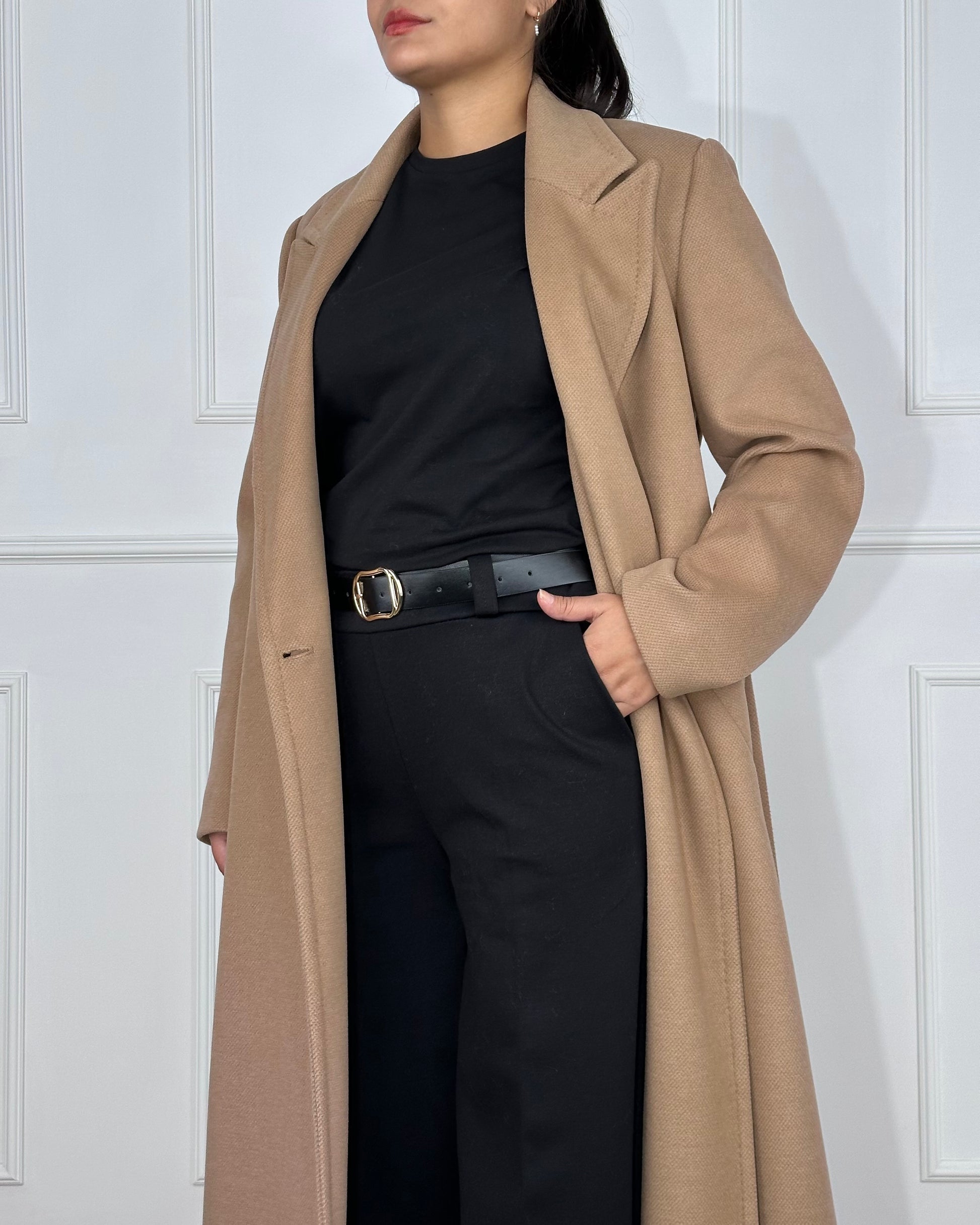Tensione in cappotto doppio petto, dotato di passanti in vita, chiusura con bottoni e fusciacca. Tasche sul davanti, spacchetti laterali. Foderato. Composizione: 91% Poliestere 9% Viscosa
