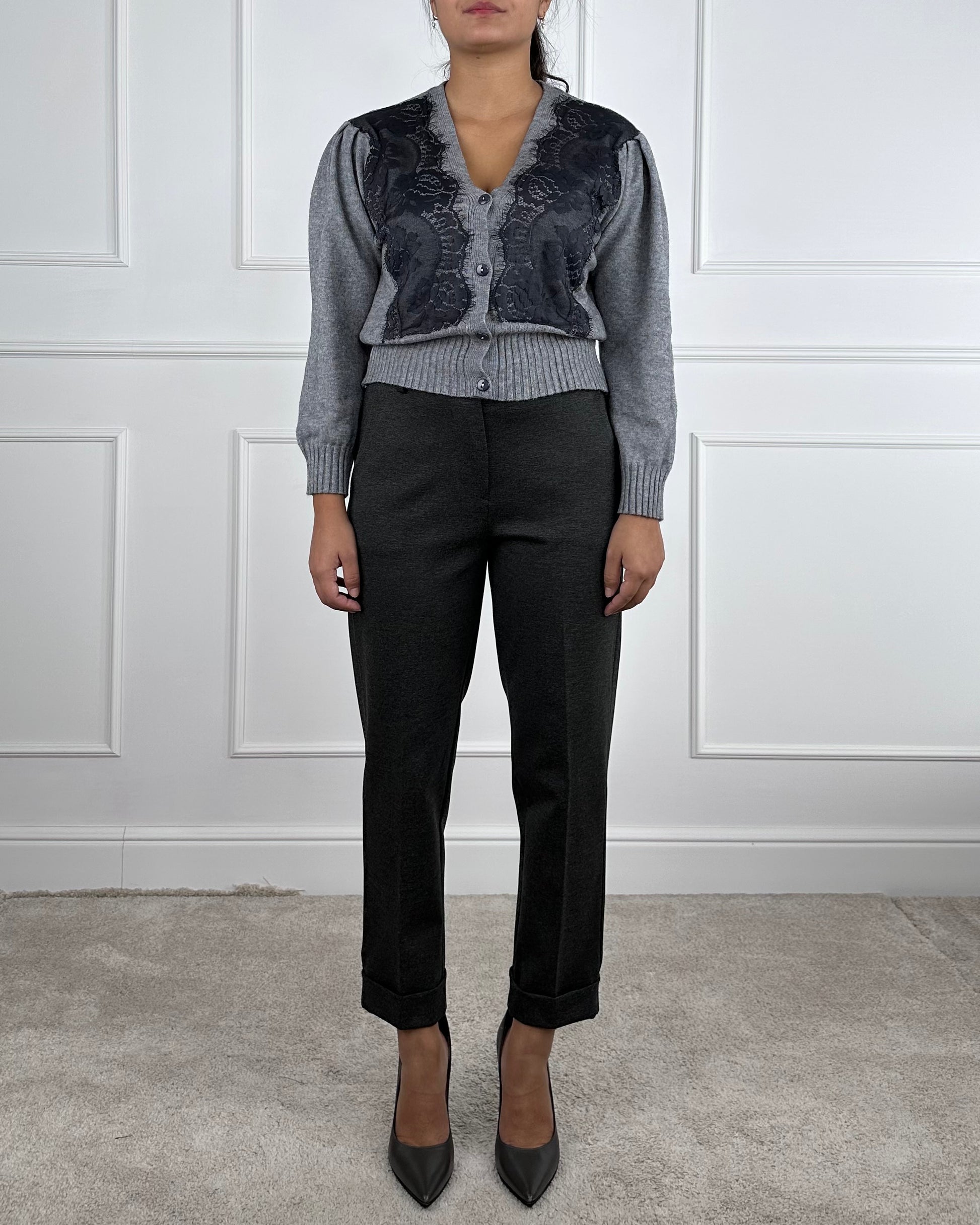 Cardigan crop, pizzo sul davanti, chiusura con bottoni, scollo a V. Composizione: 56% Viscosa 28% Poliestere 16% Poliammide