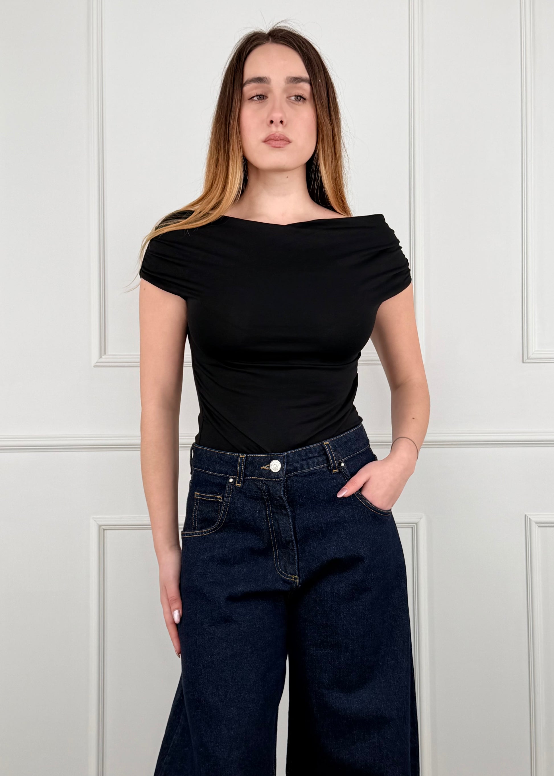Brend maglia shiffer con drappeggio sul davanti. Composizione: 95% Cotone 5% Elastan