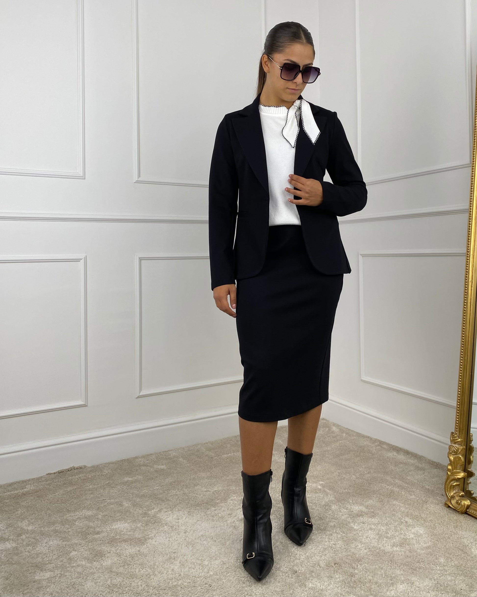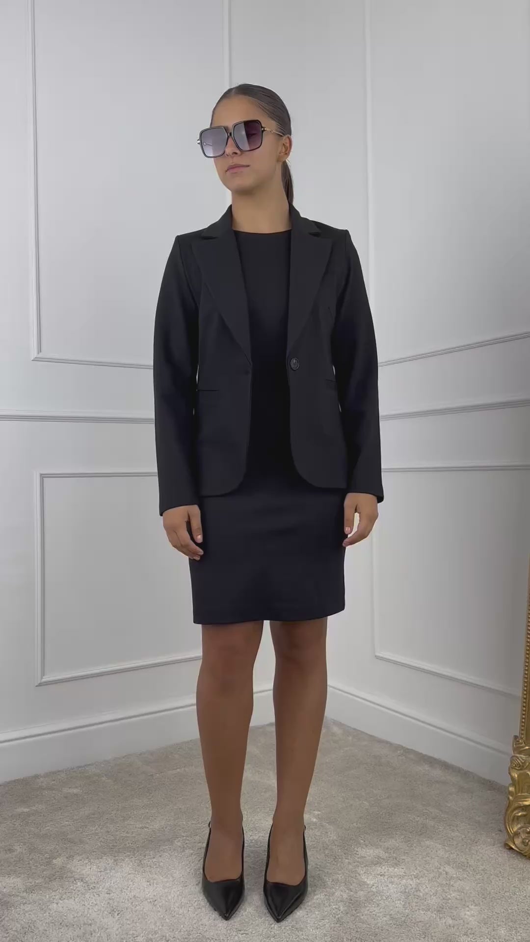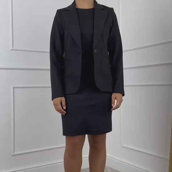 Giacca punto milano, vestibilità avvitata, chiusura con bottone.
