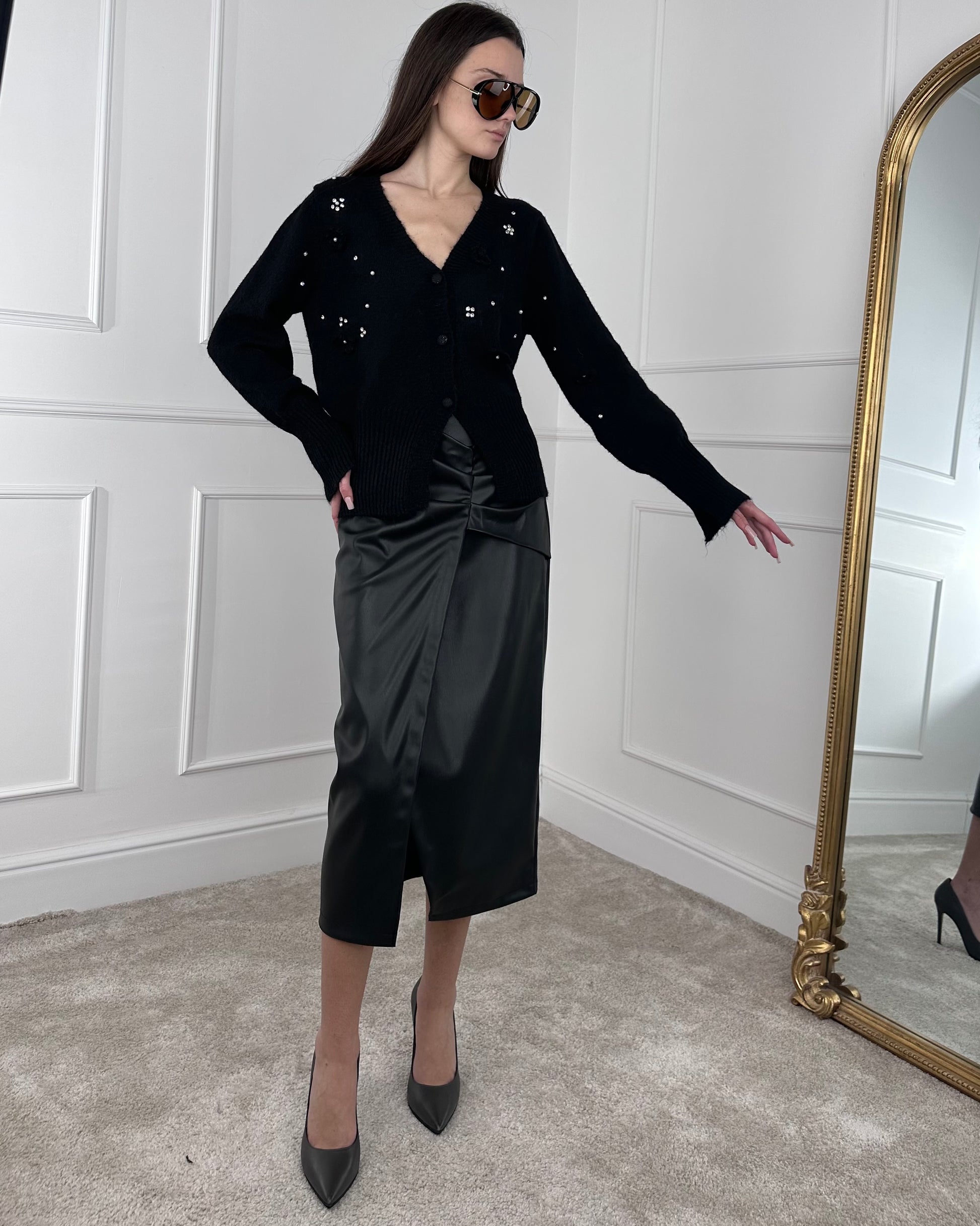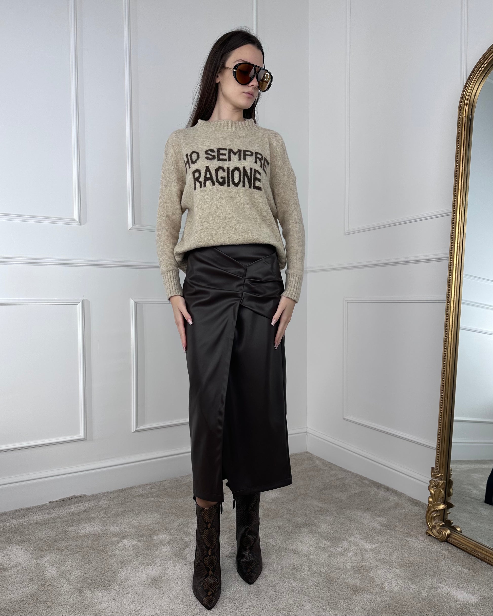 Brend gonna similpelle longuette, drappeggio, chiusura con zip sul retro, spacco