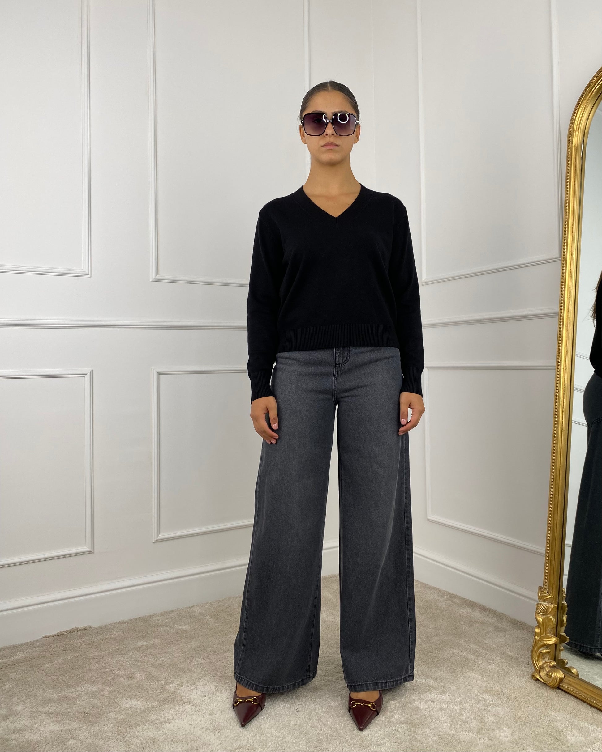 Denim modello palazzo, chiusura con bottone e zip nascosta, tasche sul davanti e sul retro. Composizione: 100% Cotone