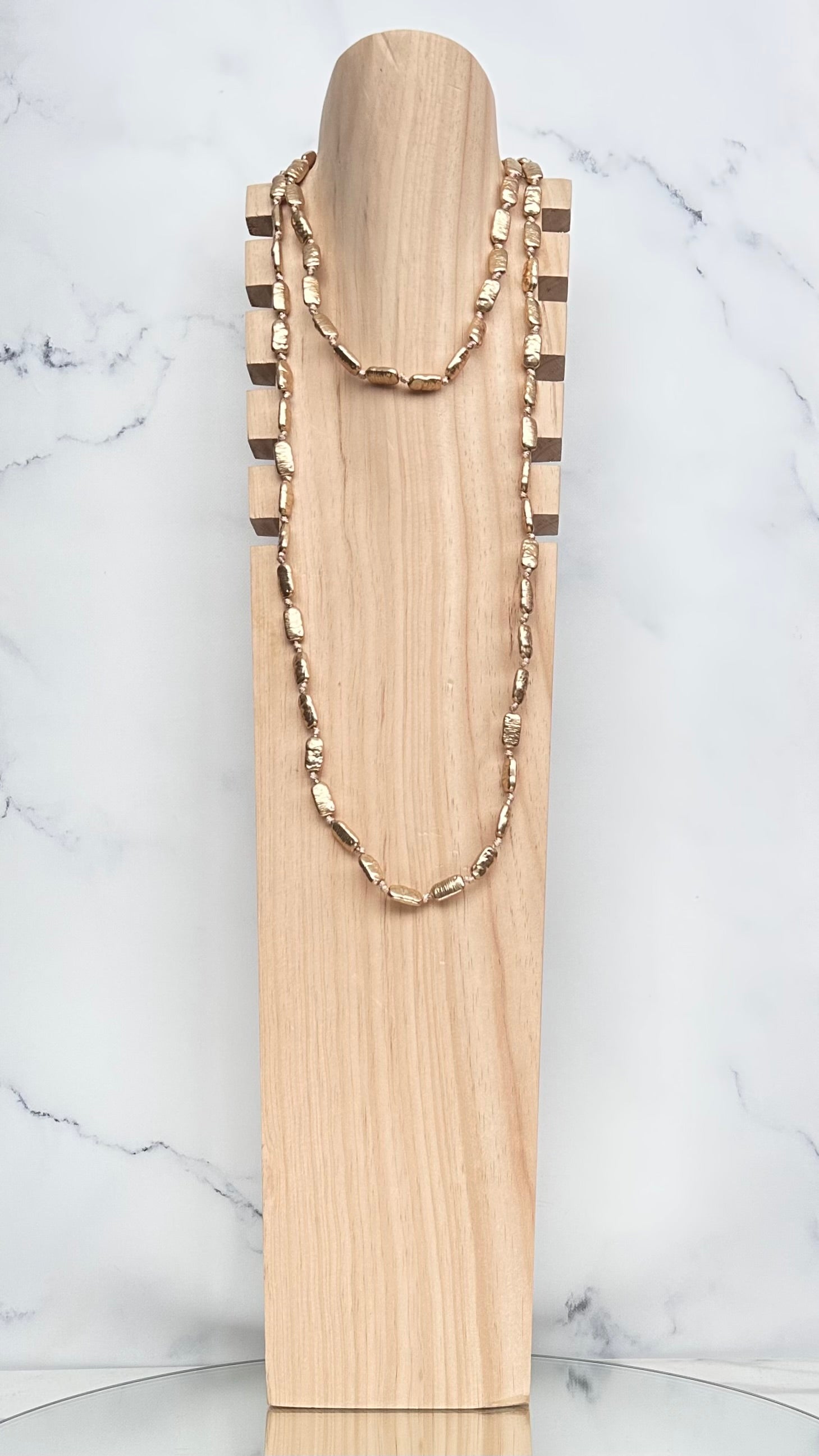 collana con perline rettangolari oro, chiusura con gancio