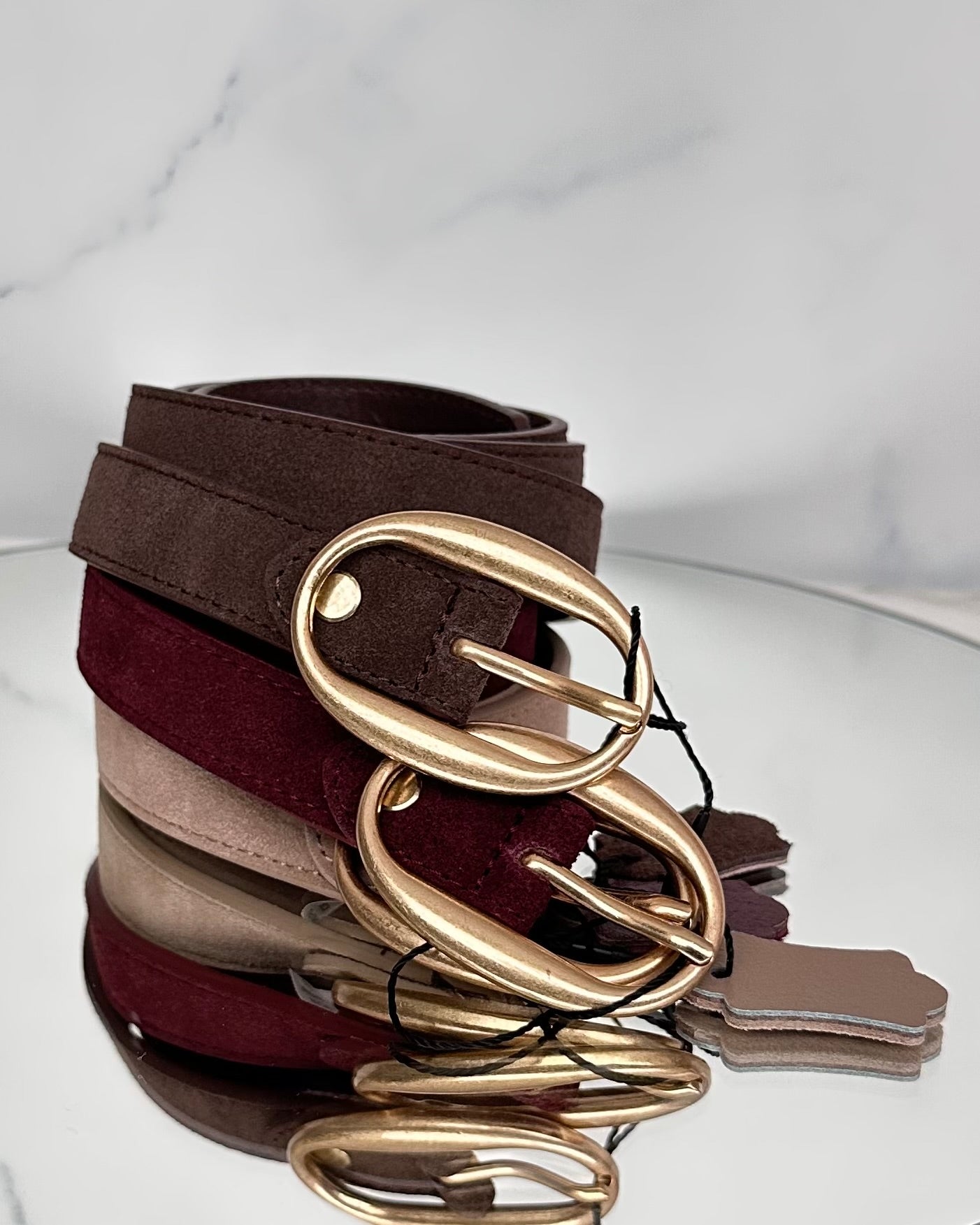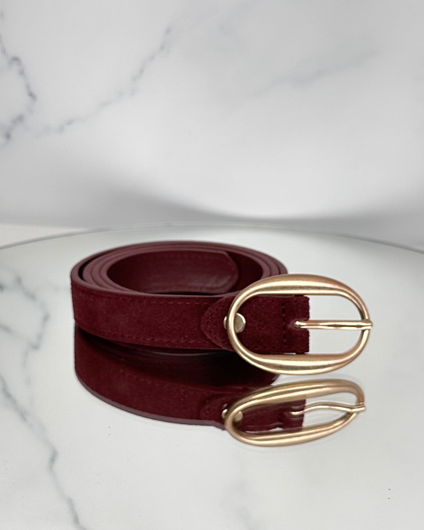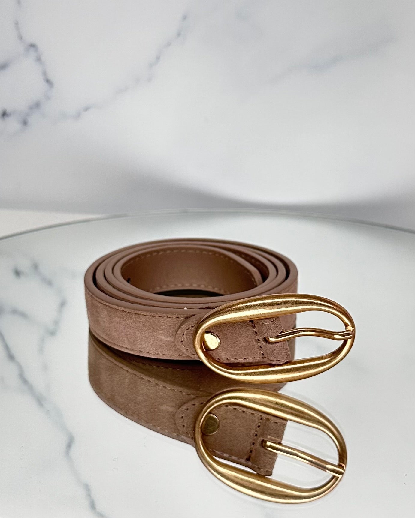 Cintura effetto suède, fibbia oro.