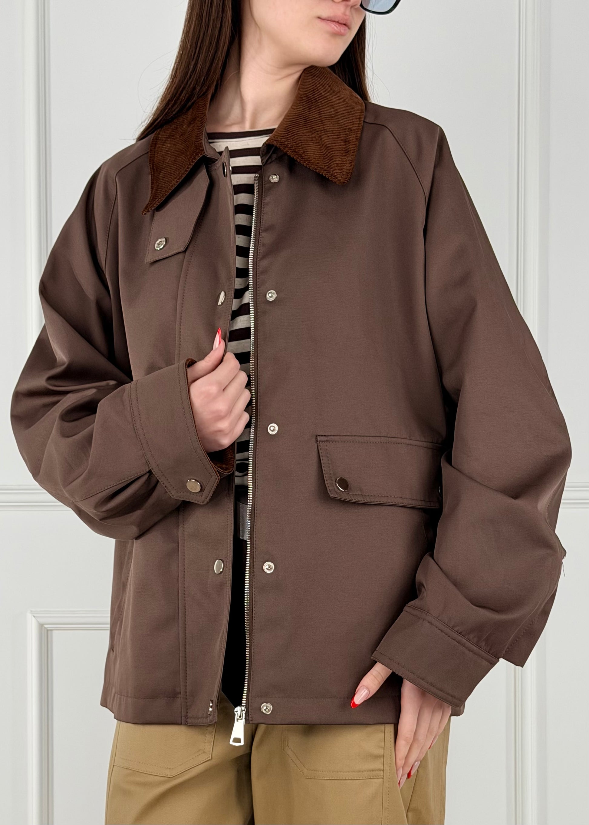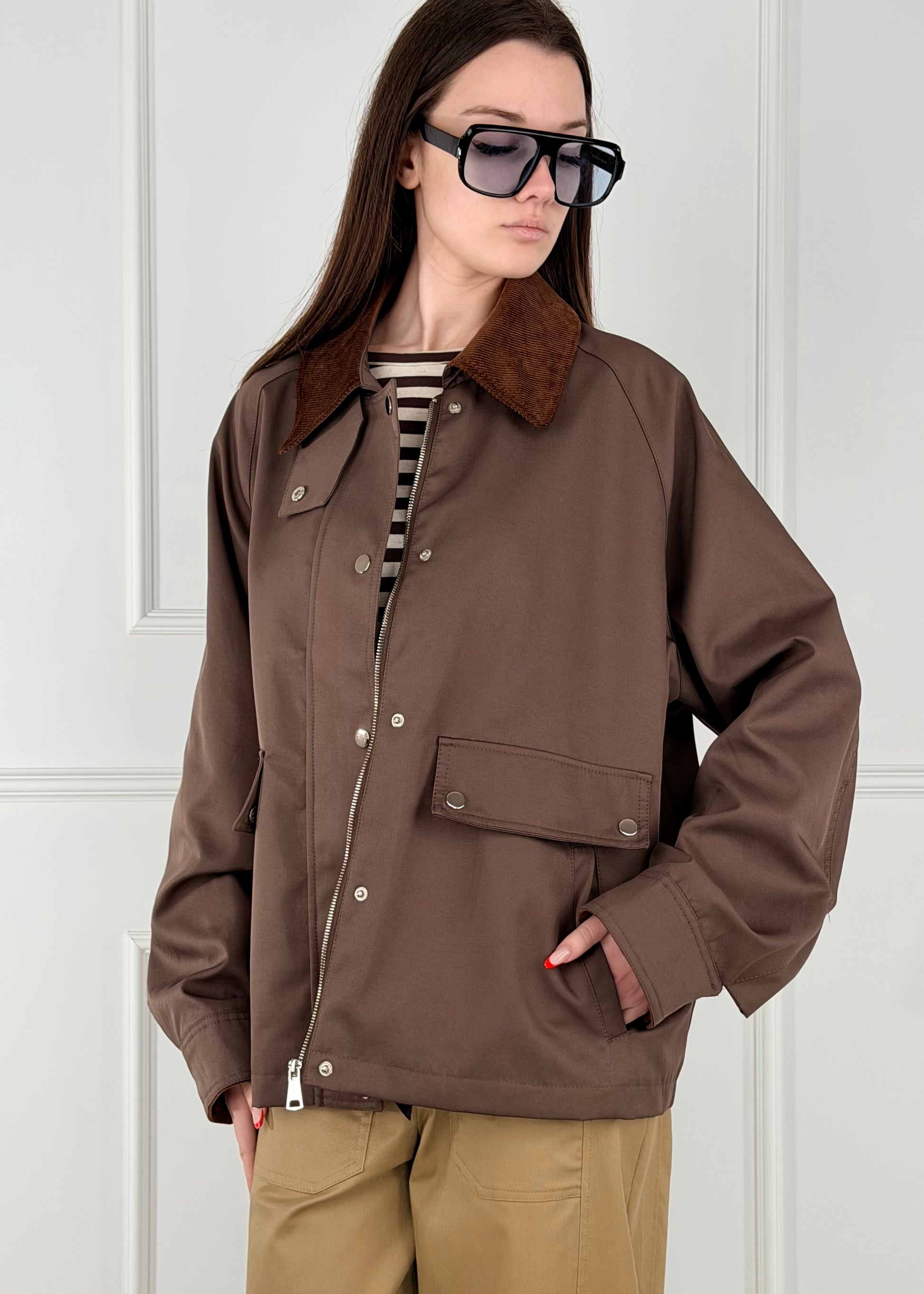 Brend giaccone chiusura con bottoni e zip, colletto e polsini in velluto, tasche sul davanti. Foderato. Composizione: 53% Cotone 47% Poliestere