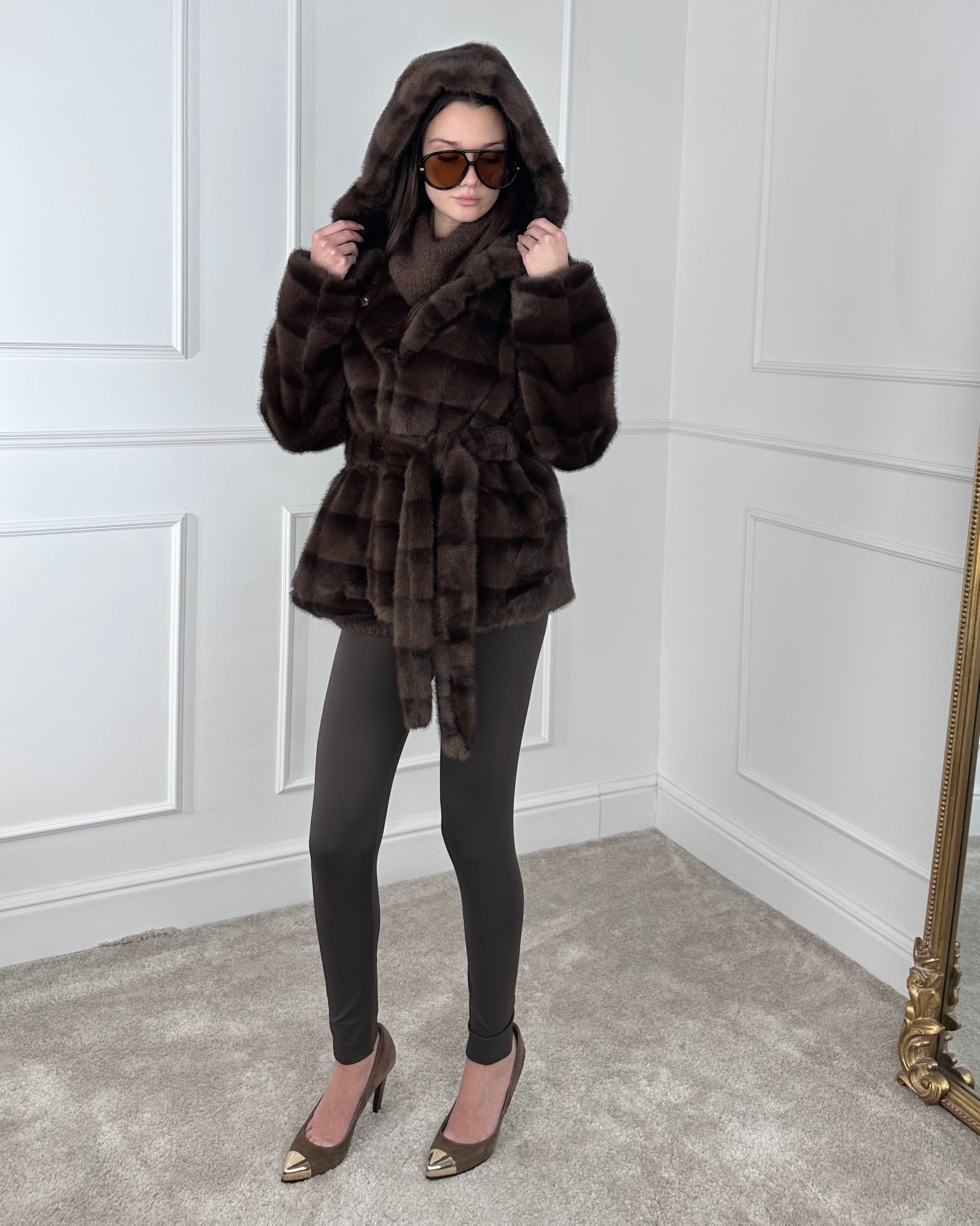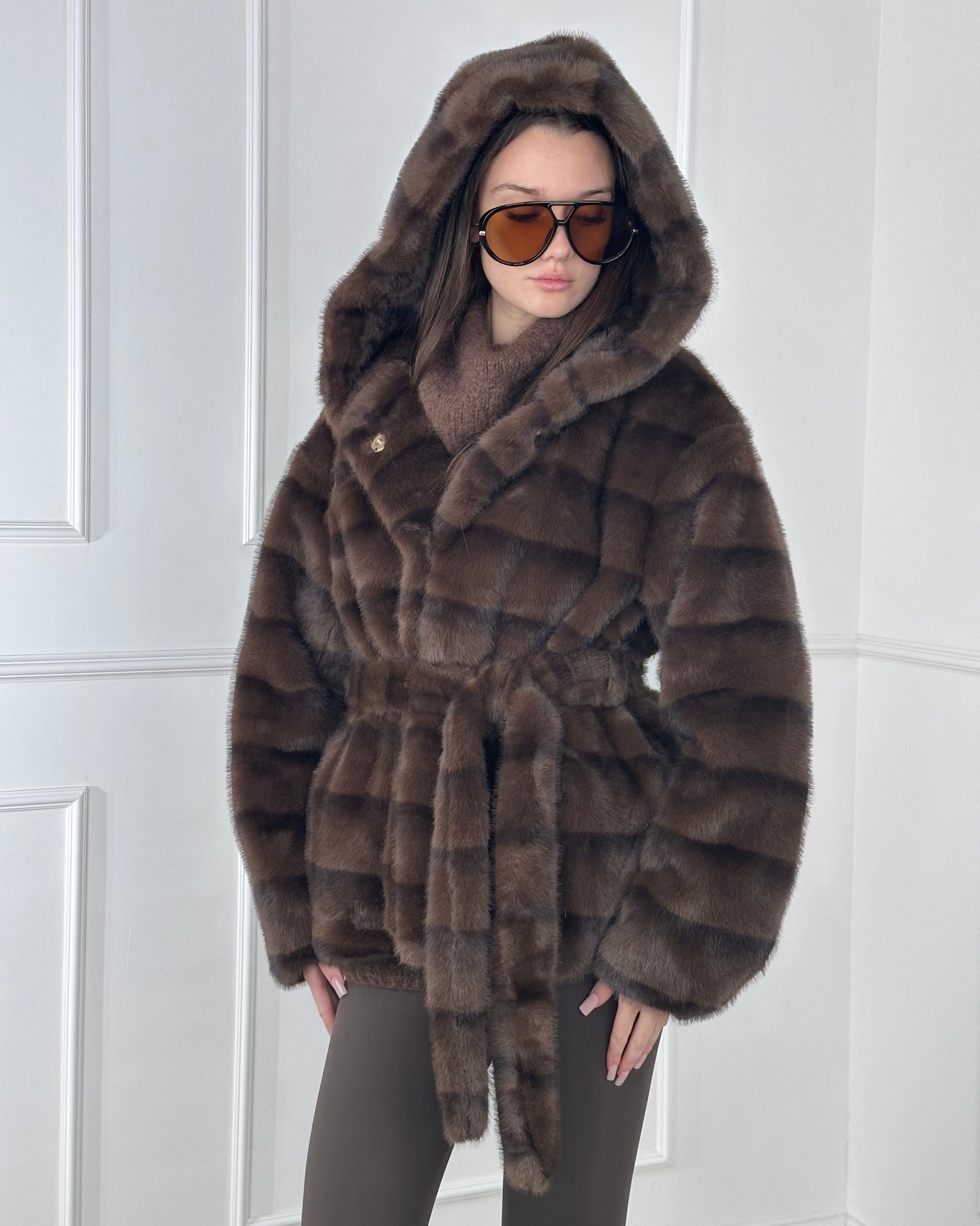 GC88213 - ECOFUR CON CINTURA E CAPPUCCIO