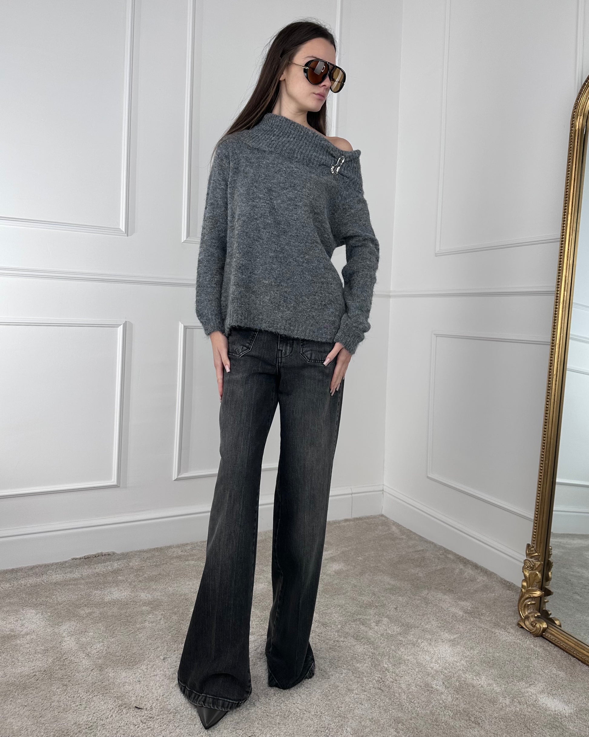 My-d maglia misto lana scollo shiffer, spilla rimovibile. Composizione: 39% poliestere ricicilato 25% poliestere 12% nylon 12% lana 10% acrilico 2% elastan