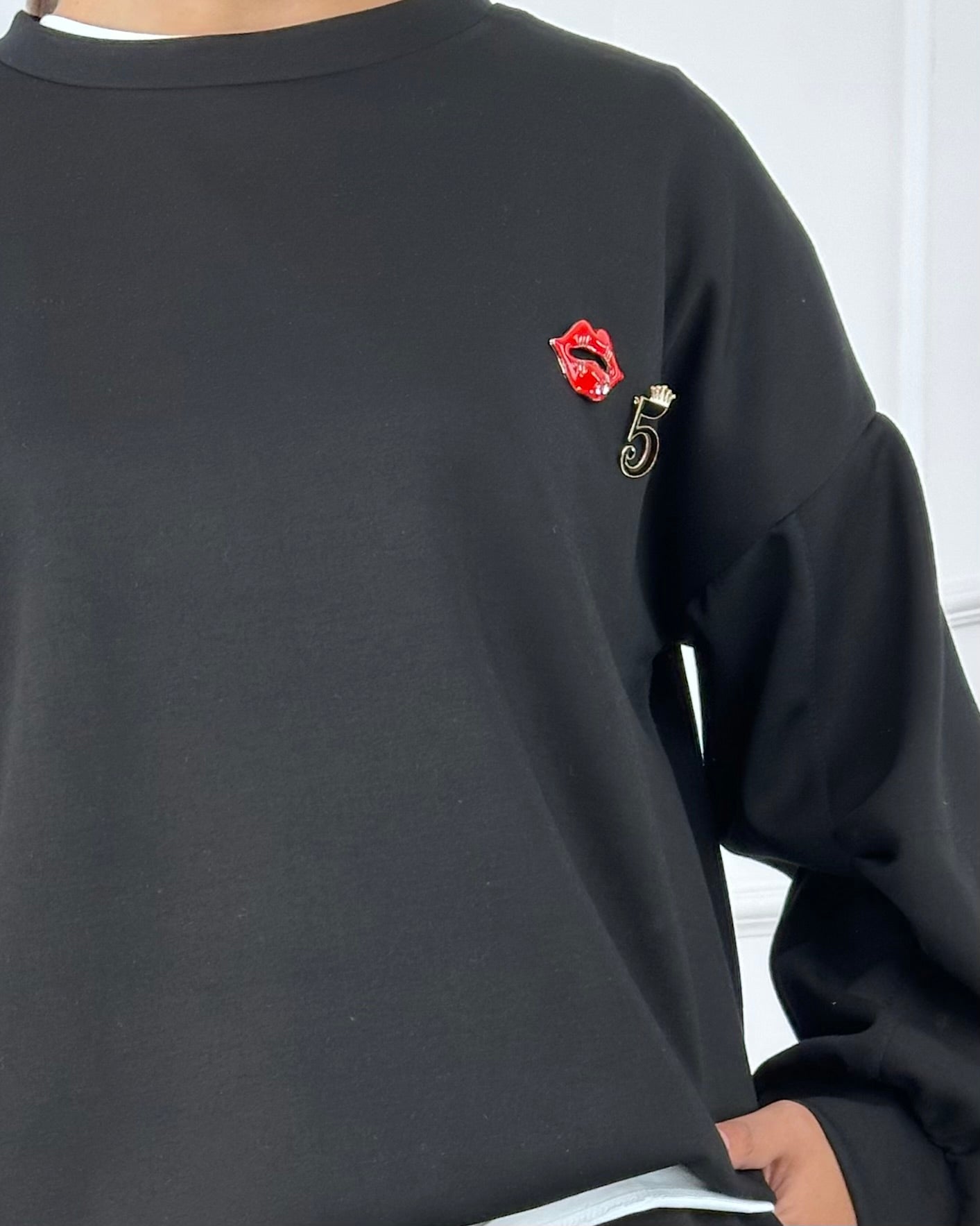 My-d felpa, scollo giro, applicazioni di spille rimovibili.