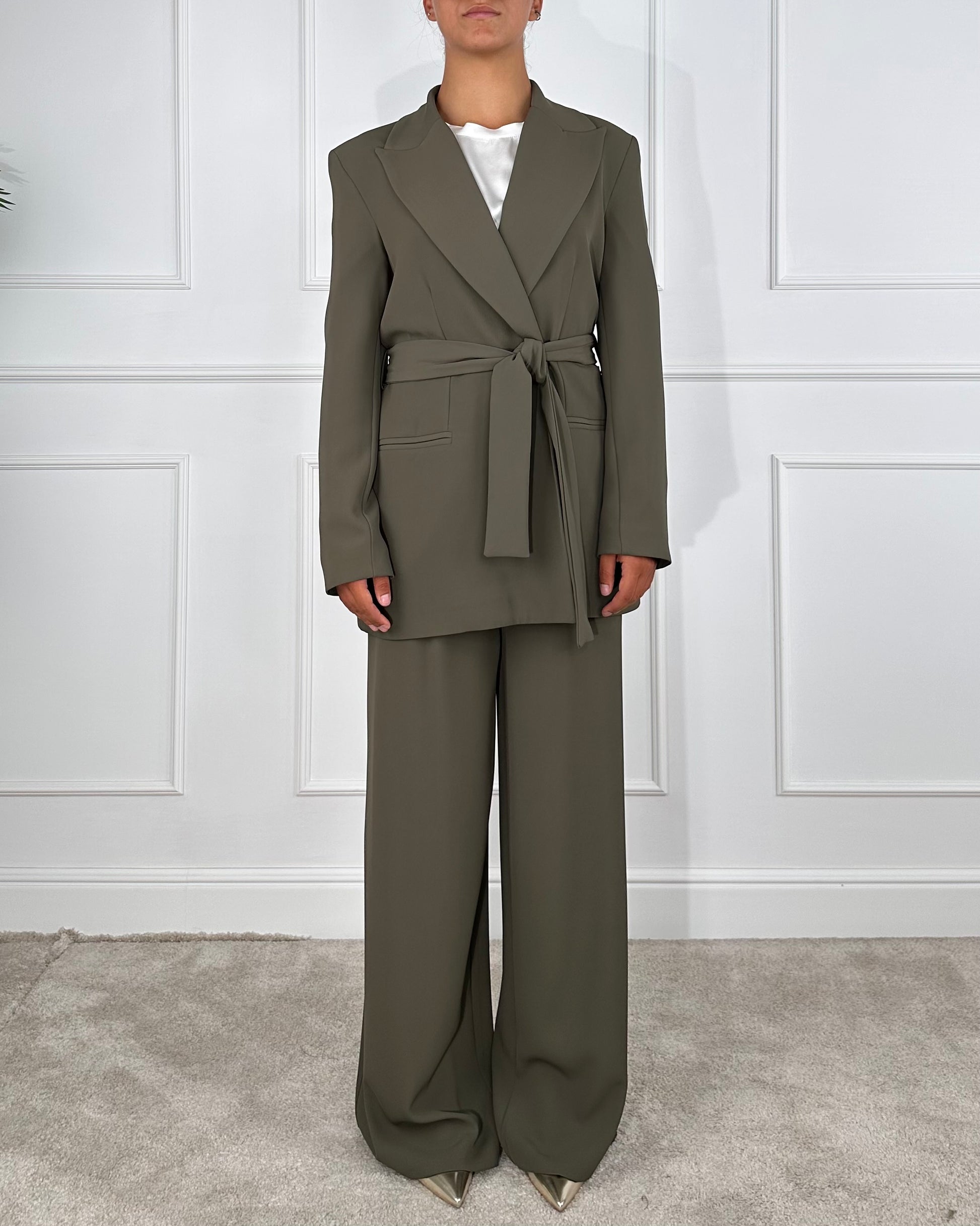 Pantalone palazzo, chiusura con gancio e zip nascosti, dotato di passanti, tasche a filo. Se vuoi creare un completo è disponibile sul nostro sito la giacca codice articolo  🔎U19364