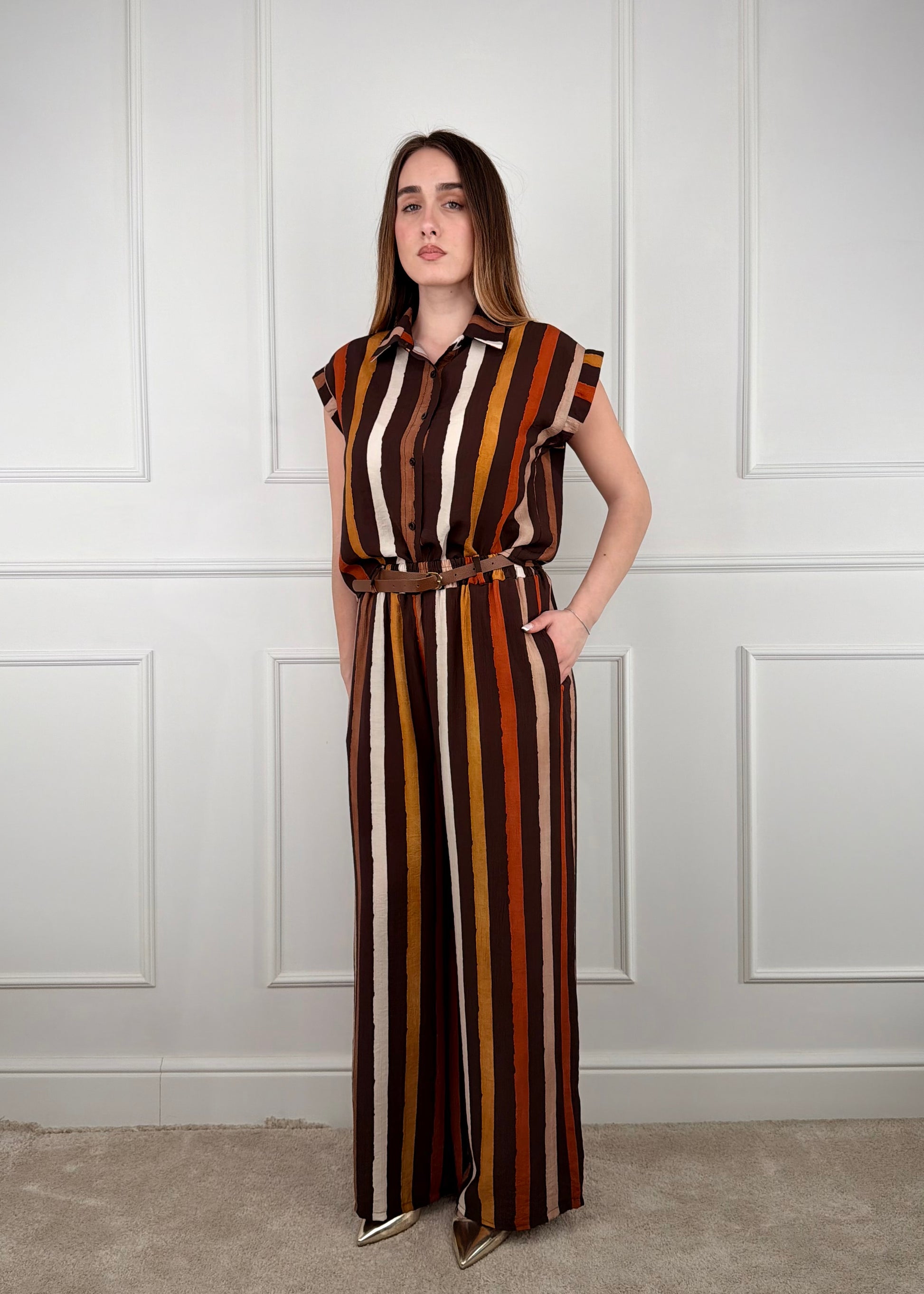 Pantalone palazzo fantasia righe, elastico in vita, dotato di passanti e cintura, tasche a filo. composizione: 87% viscosa 12% poliammide