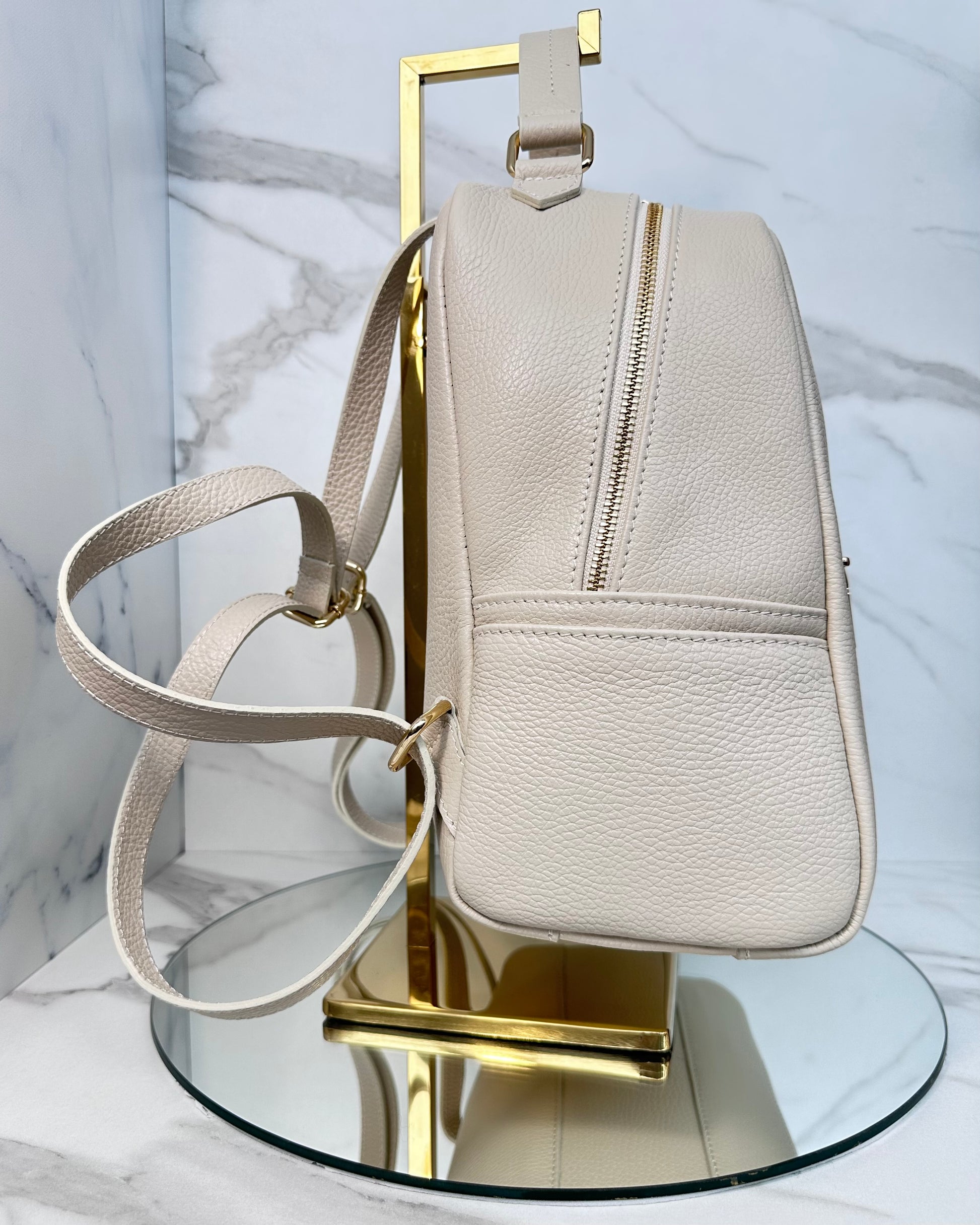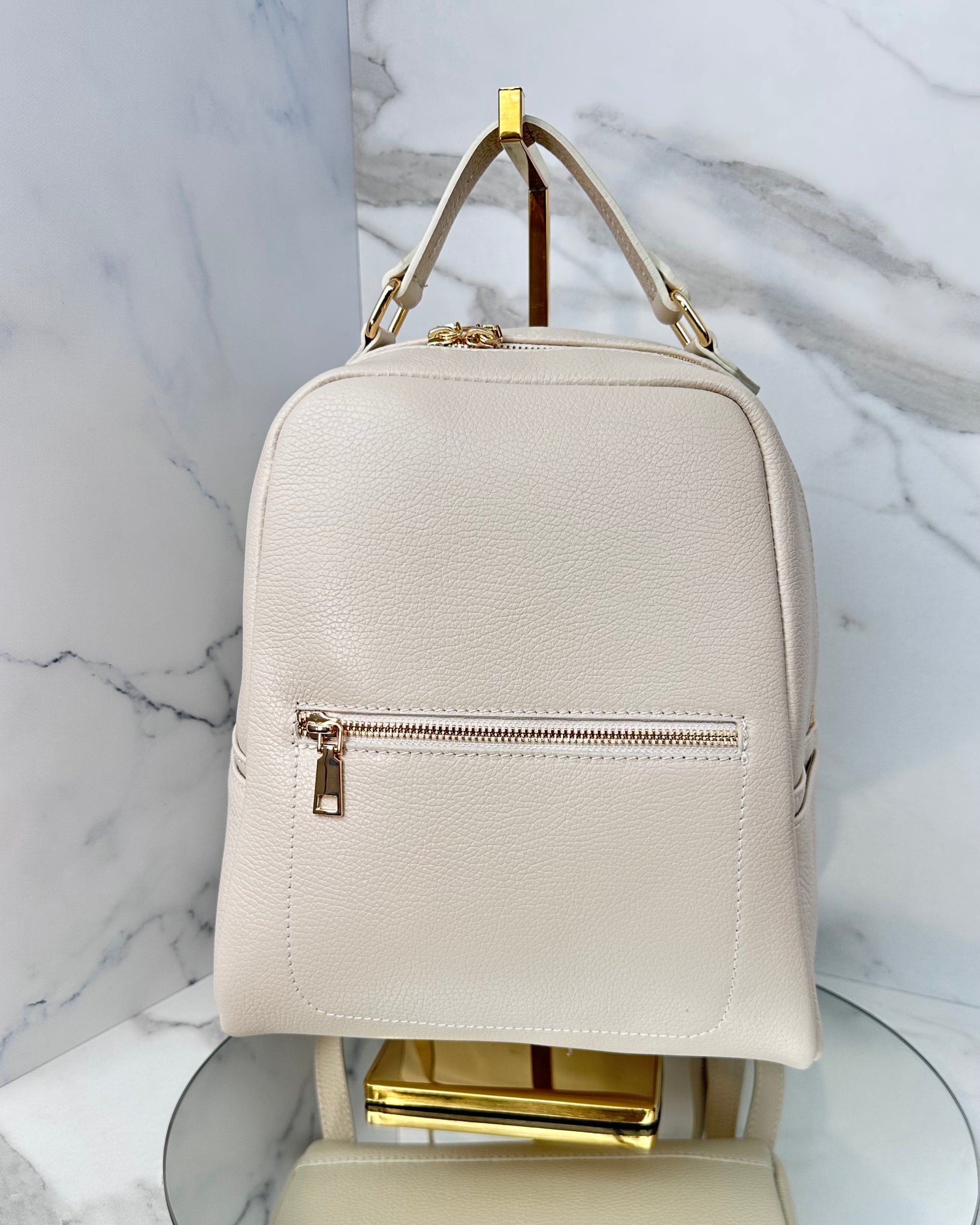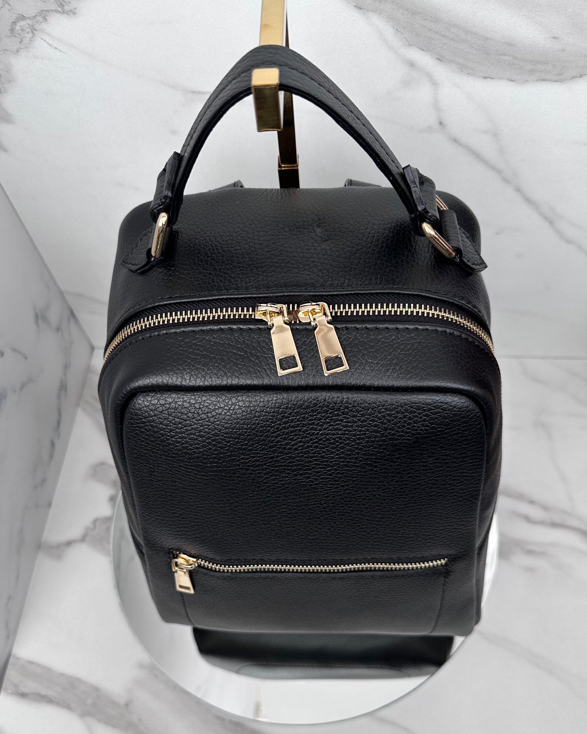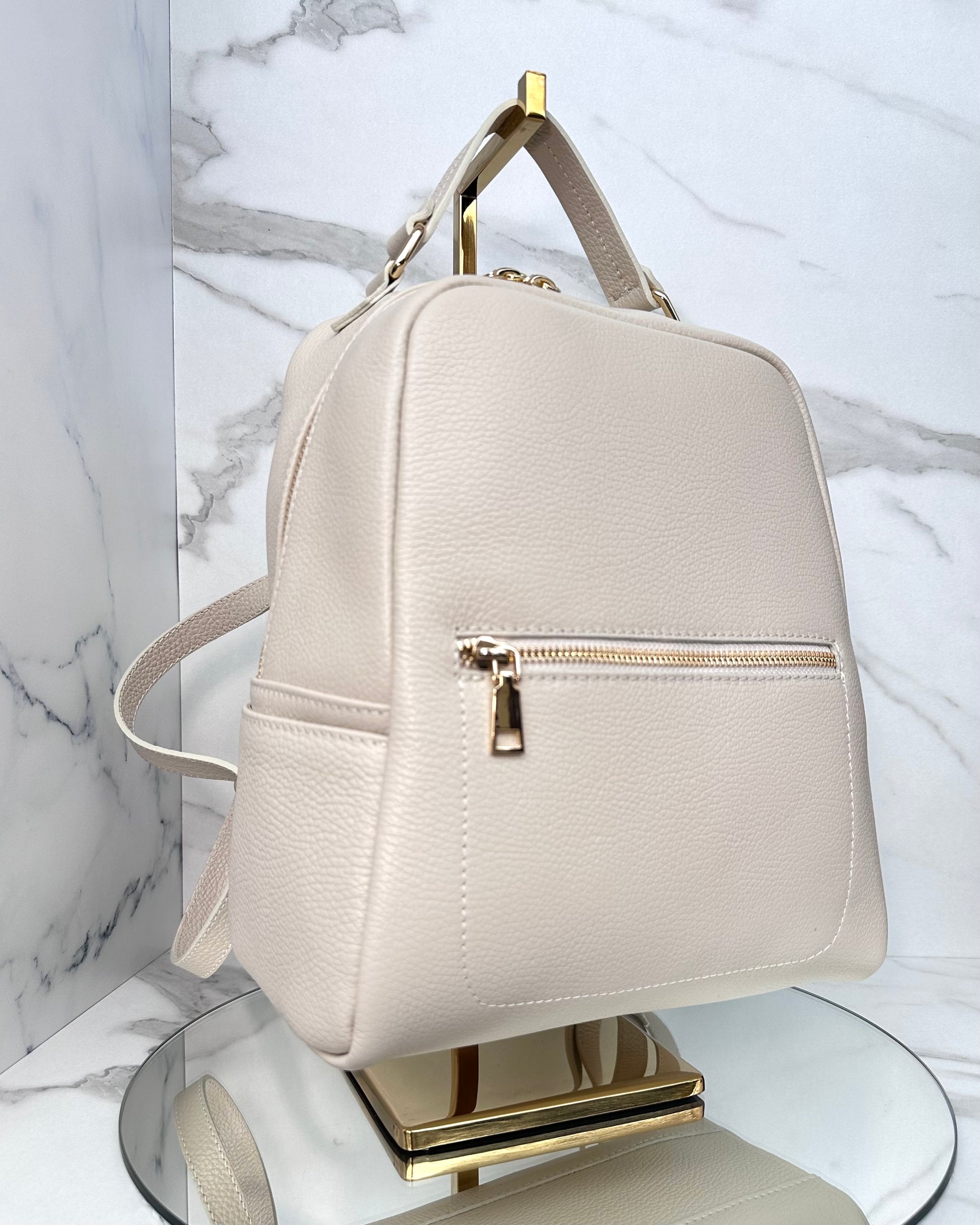 Zaino vera pelle, chiusura con zip, tasca frontale con zip. Dimensioni zaino altezza 29 cm larghezza 25 cm profondità 14 cm
